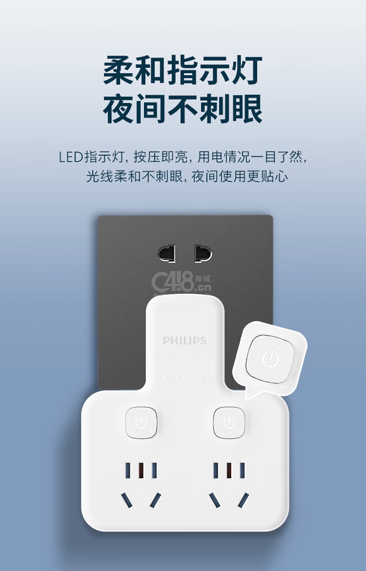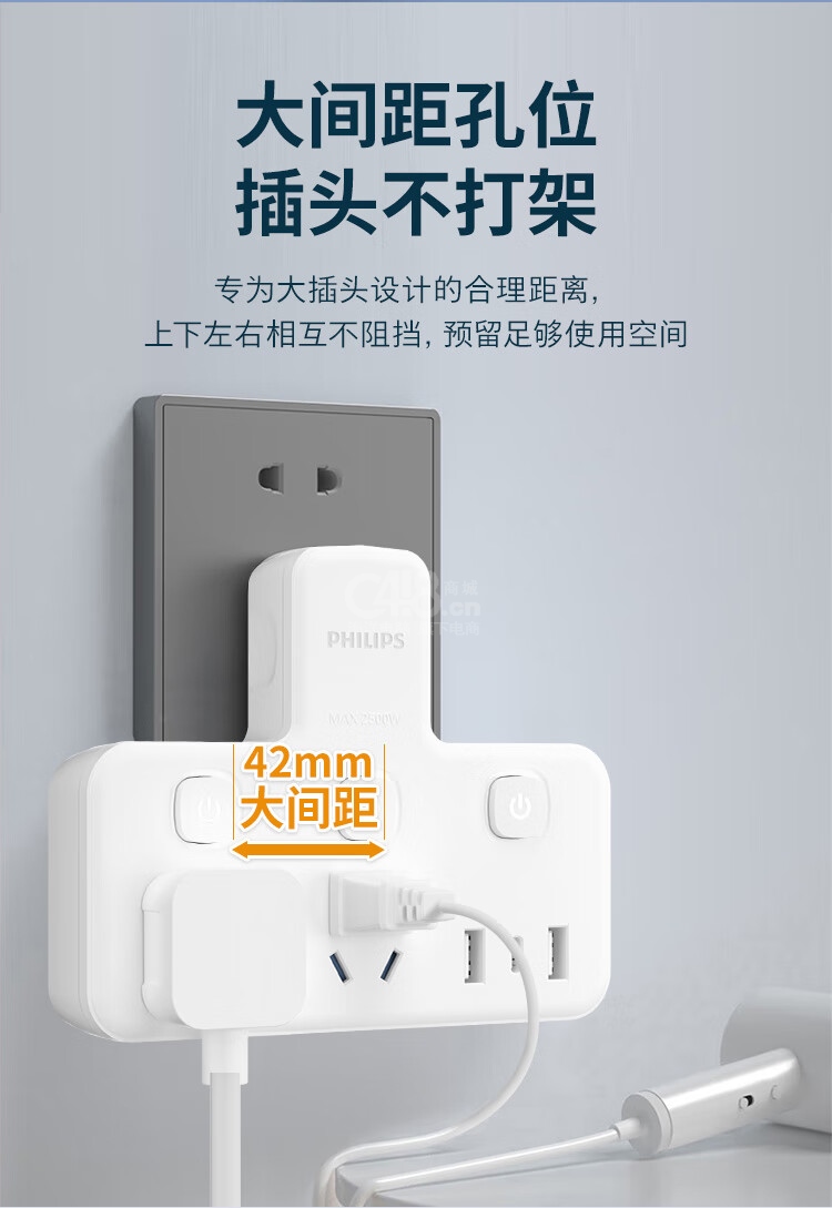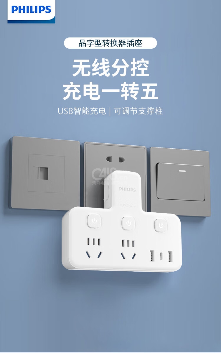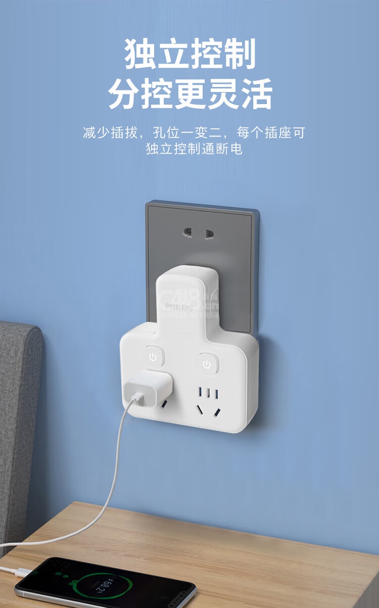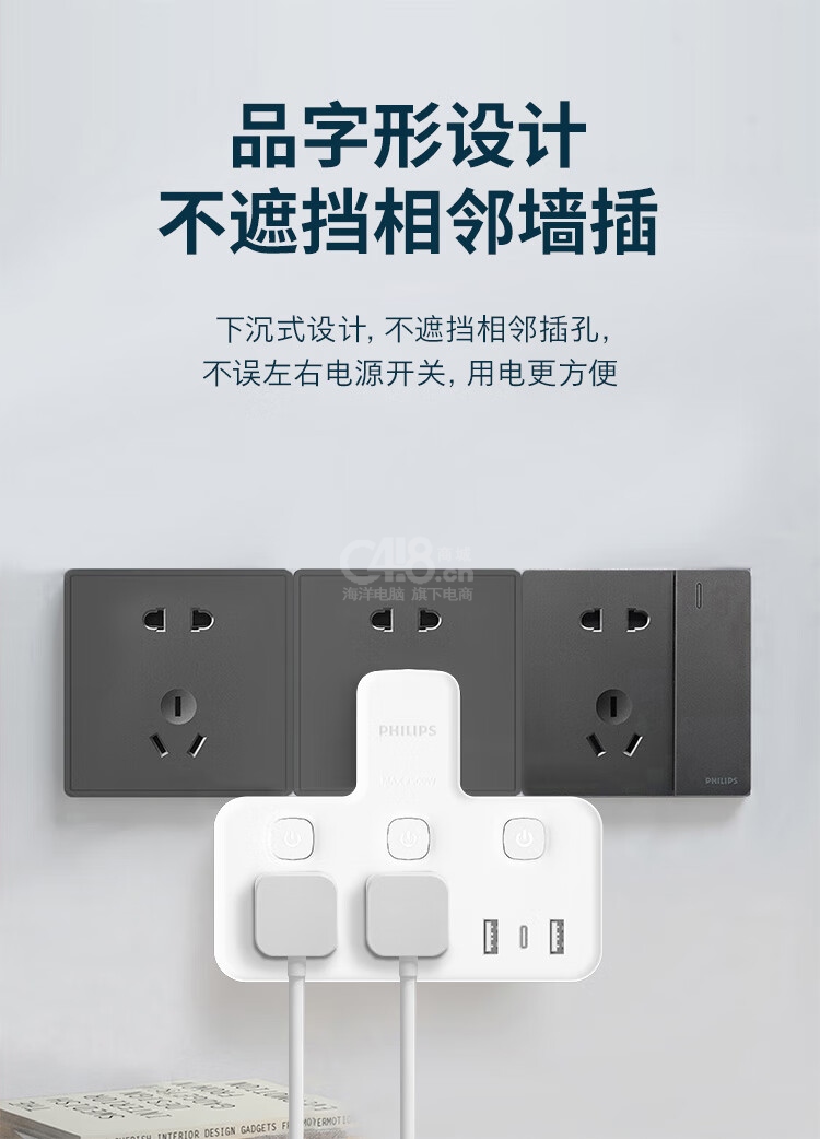 “PHILIPS/飛利浦”SPB4021W/93 插座 單個(gè)裝(轉(zhuǎn)換器插排品字形多功能轉(zhuǎn)換插頭一轉(zhuǎn)多插座擴(kuò)展學(xué)生宿舍排插家用轉(zhuǎn)換器插線板多用多孔一轉(zhuǎn)五分控2位+3USB)