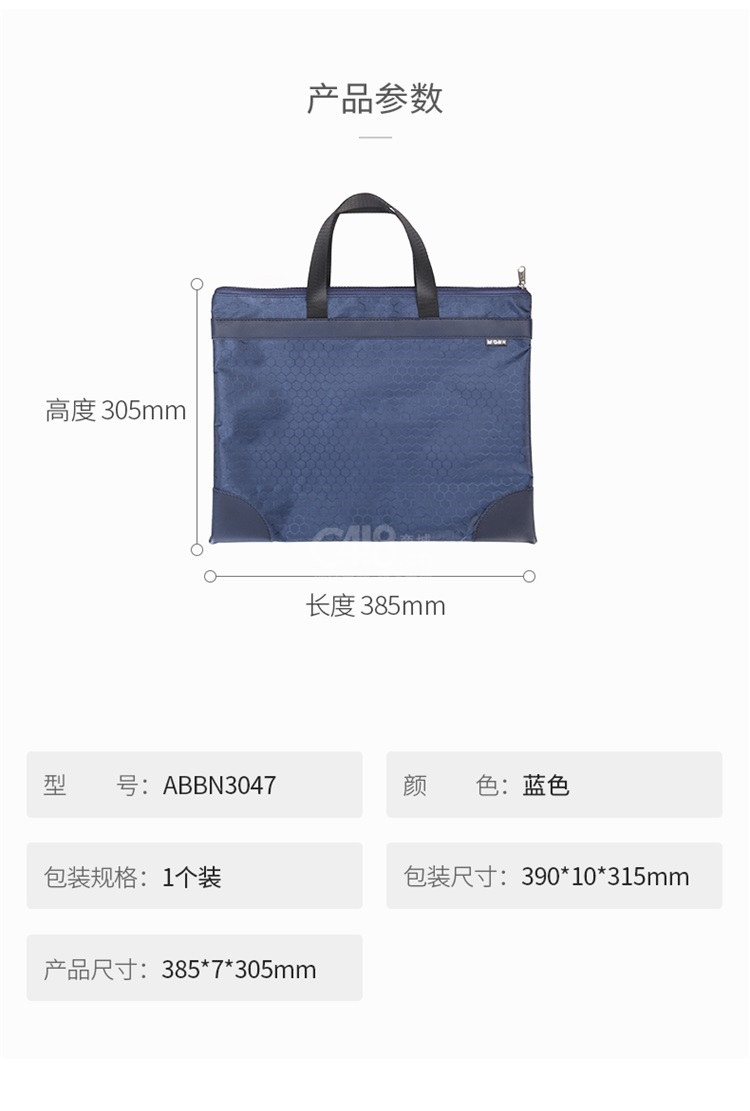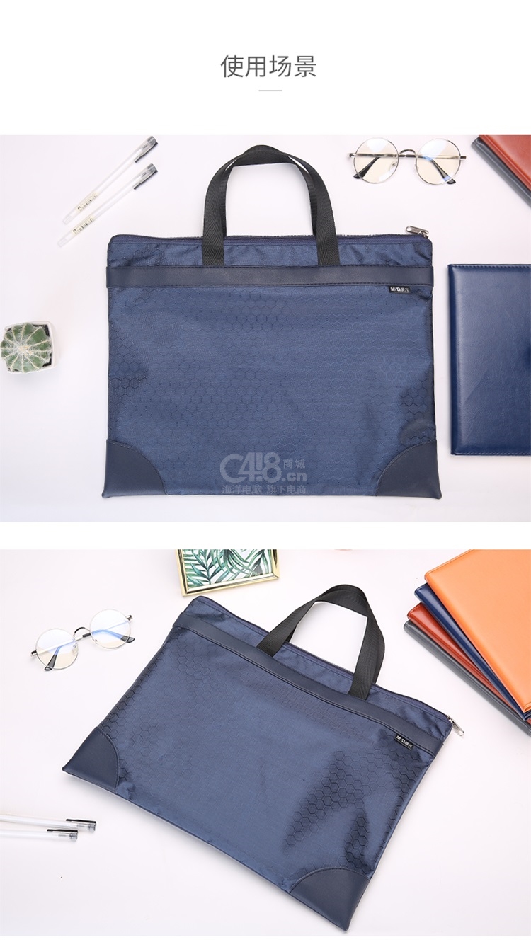 “M&G/晨光”ABBN3047 球紋手提包 單個裝(藍色A4會議包事務包大容量商務公文拉鏈袋資料袋文件袋ABBN304722)