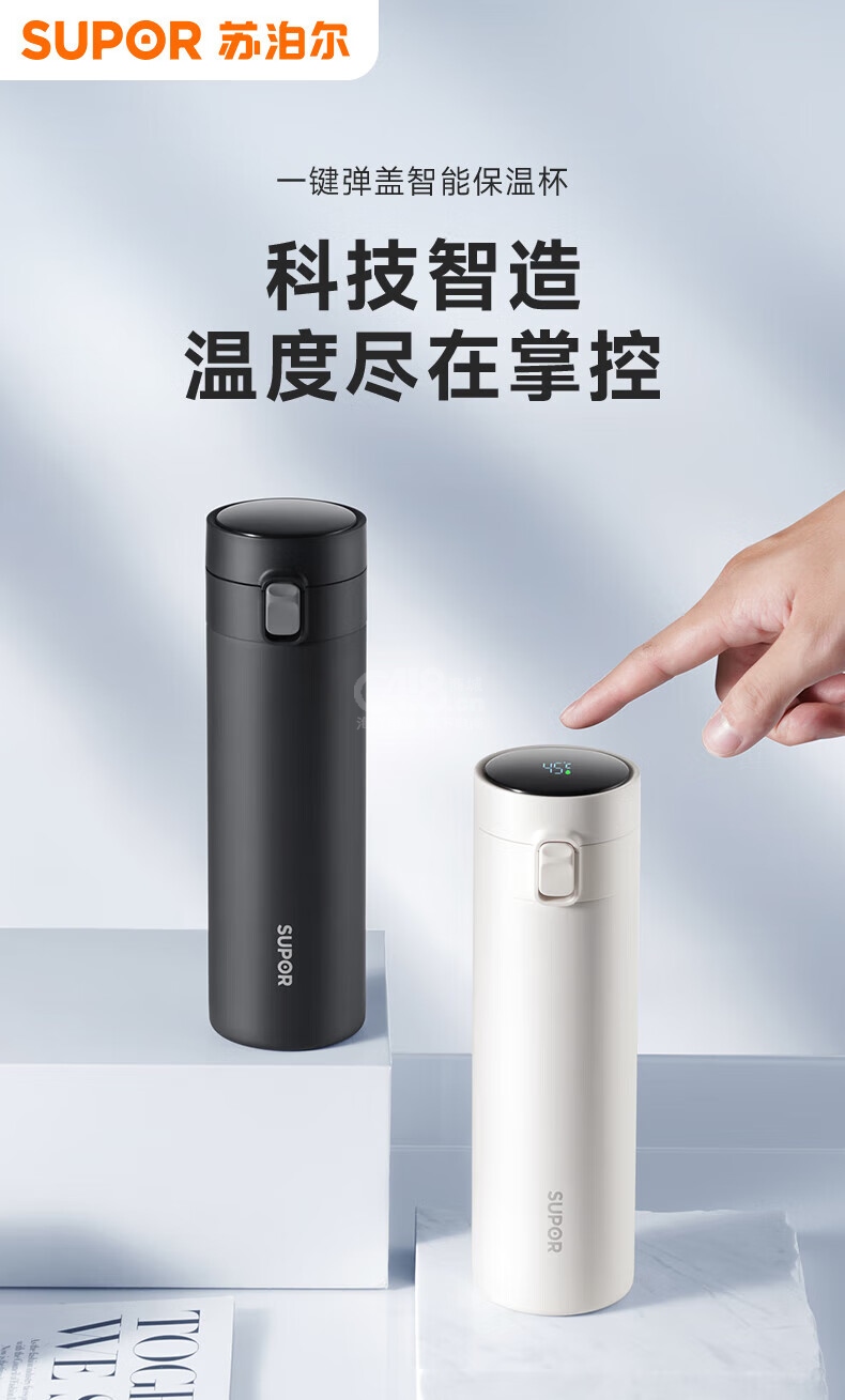 “SUPOR/蘇泊爾”KC50KL20 保溫杯 單個裝(儒雅黑大容量男女學生彈蓋316L不銹鋼保溫水杯子500mL長效保熱保冷便攜式可車載茶杯)
