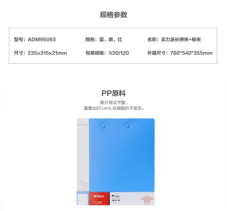 “M&G/晨光”ADM95093 實力派文件夾 單個裝(紅色A4強力派長押+板夾文件夾PP材質(zhì)資料夾雙夾)