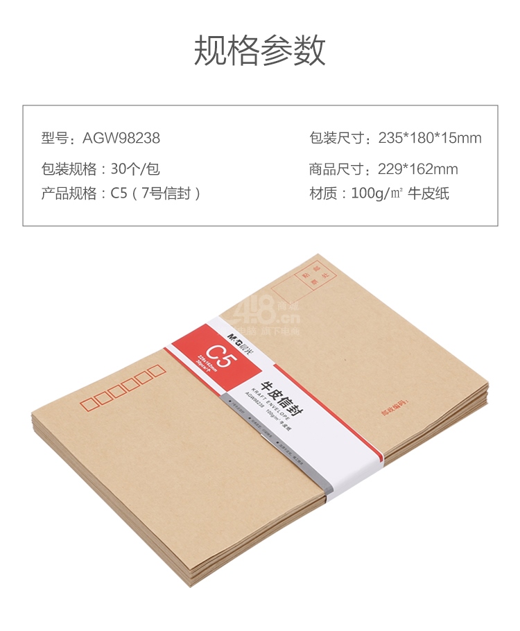 “M&G/晨光”AGW98238 牛皮信封 單包裝(文具7號C5紙信封229*162mm辦公專用發(fā)票袋商務(wù)郵局標(biāo)準(zhǔn)信封袋工資袋30個/包)