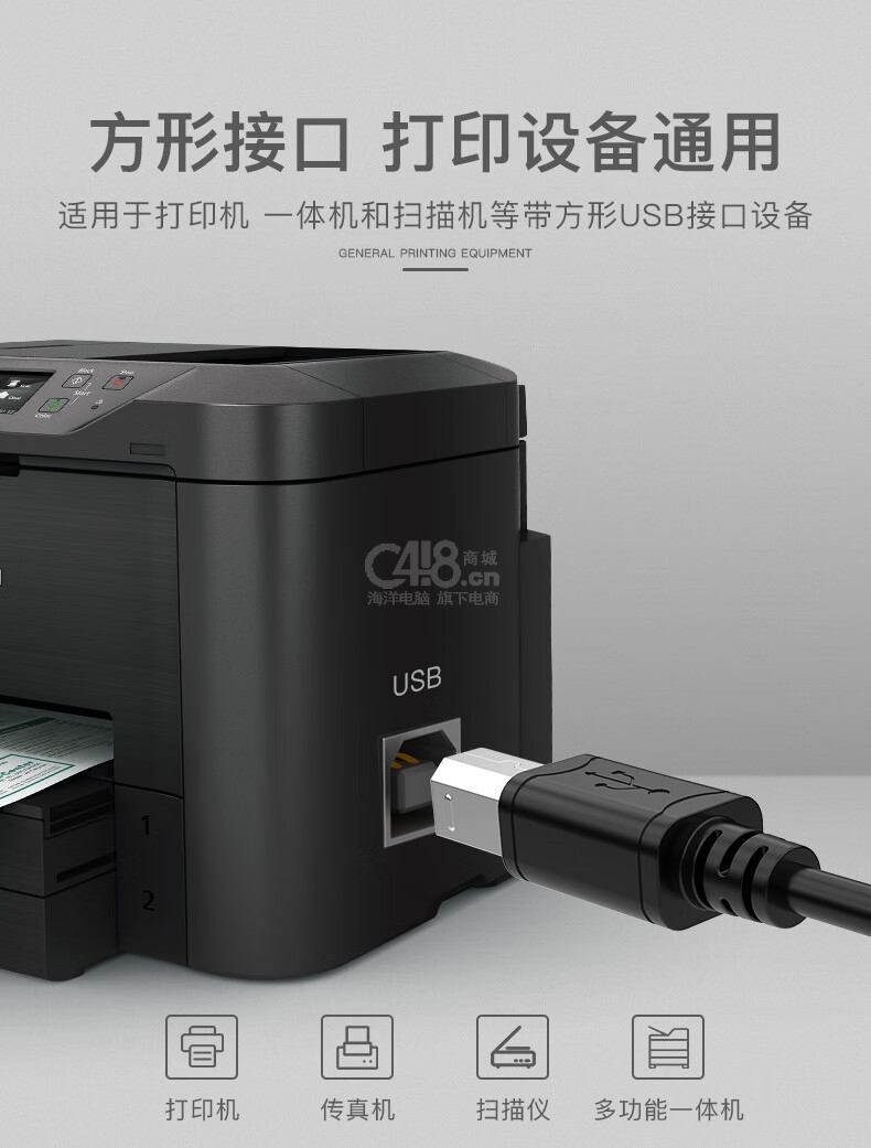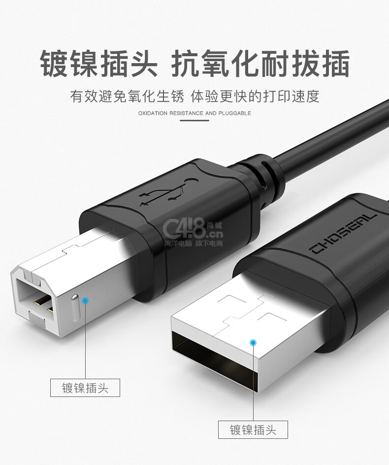 “CHOSEAL/秋葉原(秋枼原)”QS5307AT2 USB2.0方口打印線 單條裝(黑色高速USB打印機(jī)數(shù)據(jù)連接線2.0打印機(jī)線方口usb打印線適用惠普HP佳能愛(ài)普生2米/條)