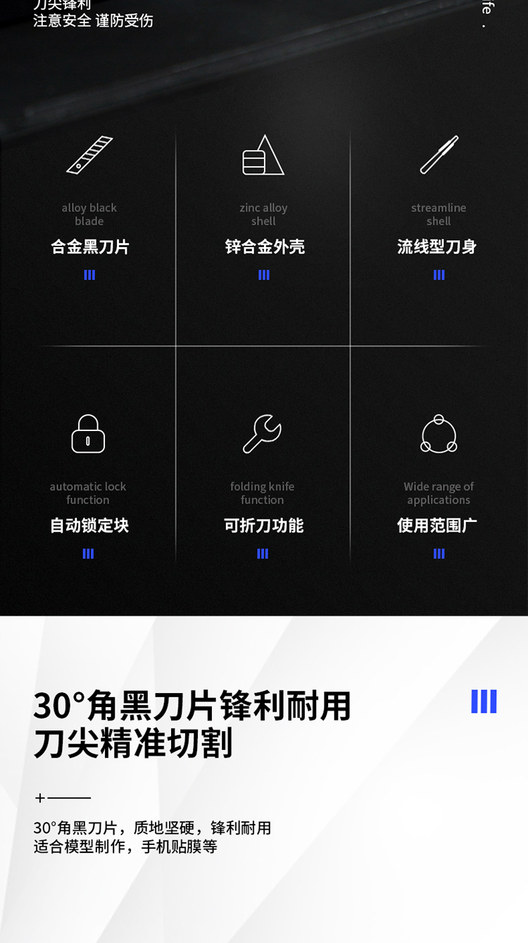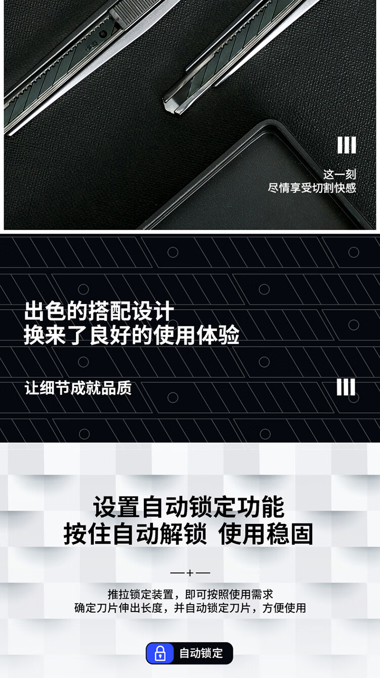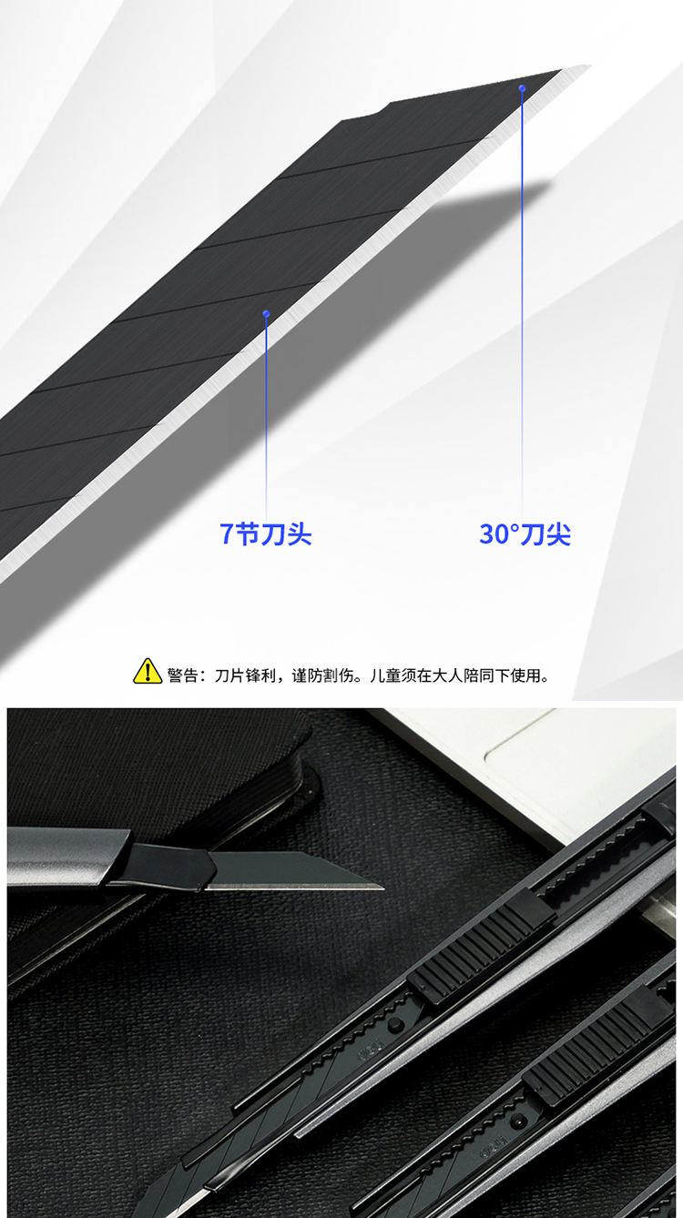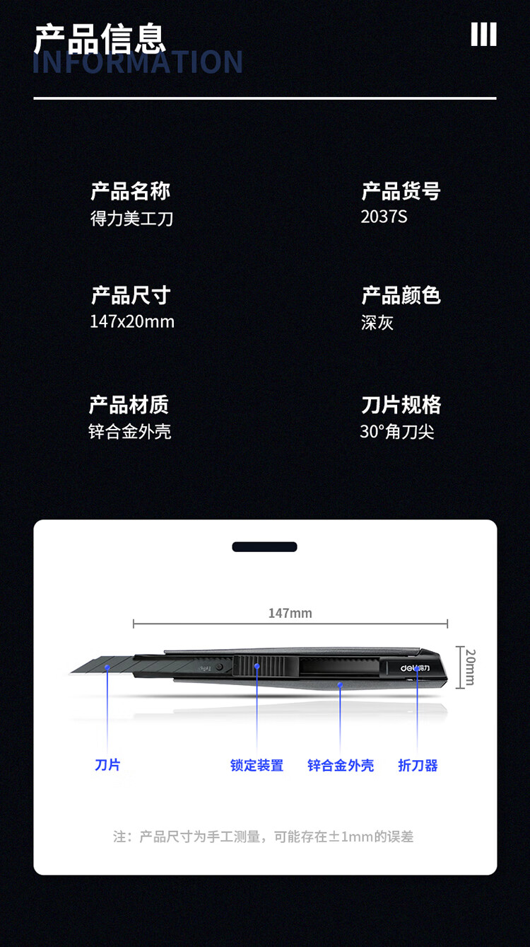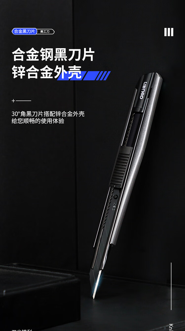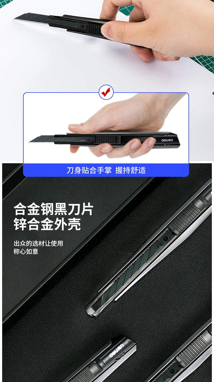 “deli/得力”No.2037S 美工刀 單把裝(小號30°黑刀刃鋅合金裁紙刀壁紙刀)