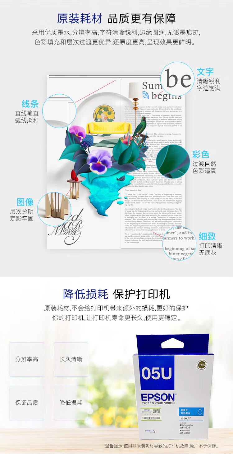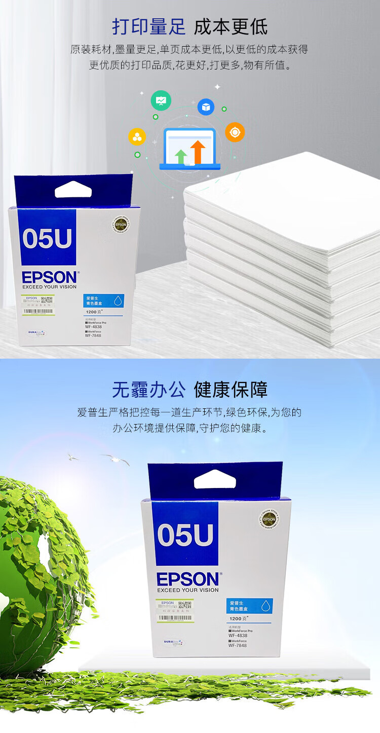 “EPSON/愛(ài)普生”T05U2 墨盒 單個(gè)裝(青色適用WF-4838/WF-7848機(jī)型打印量約1200頁(yè))