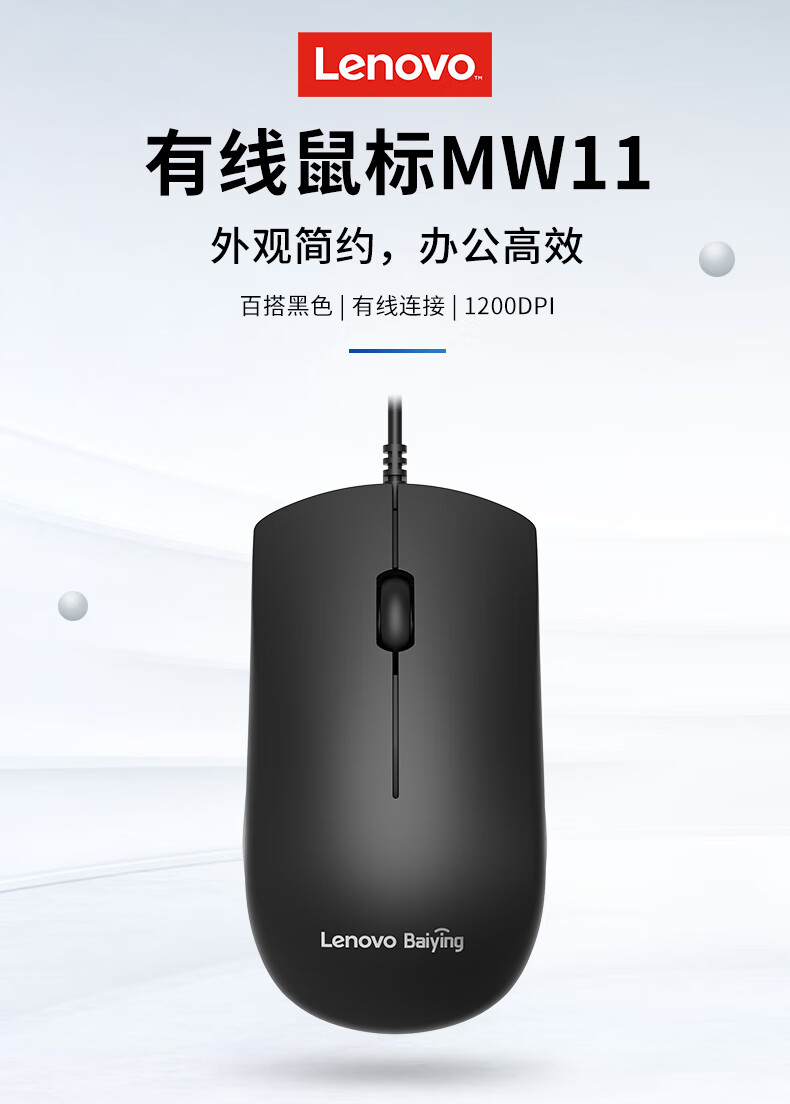 “Lenovo/聯(lián)想”MW11 有線鼠標(biāo) 單個(gè)裝(百應(yīng)辦公便攜USB接口1.5米線長即插即用筆記本臺(tái)式機(jī))