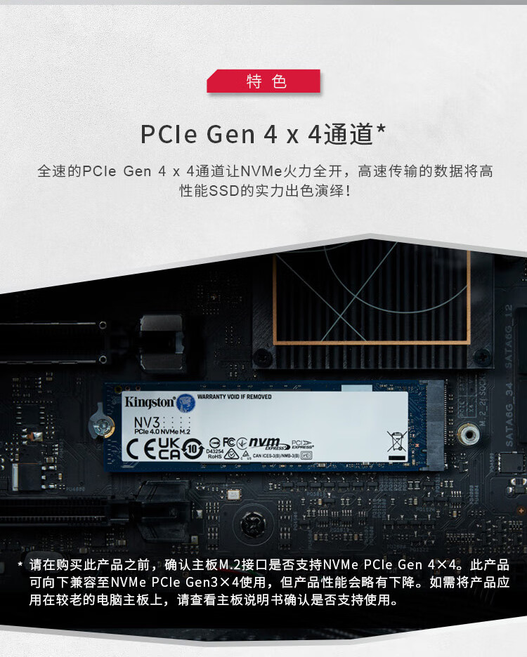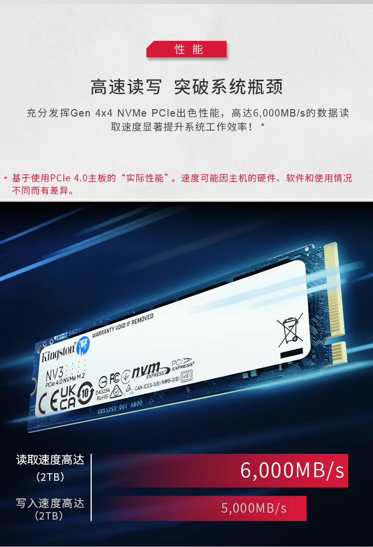 “Kingston/金士頓”SNV3S/2000G或SNV3S/2000GCN SSD固態(tài)硬盤 單個(gè)裝(2TB M.2 NVMe PCIe 4.0×4 NV3系列讀速6000MB/s)