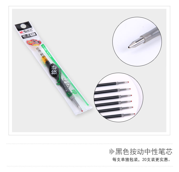 晨光按動中性筆芯0.5mm 20支裝 黑色(新老包裝交替發(fā)貨)