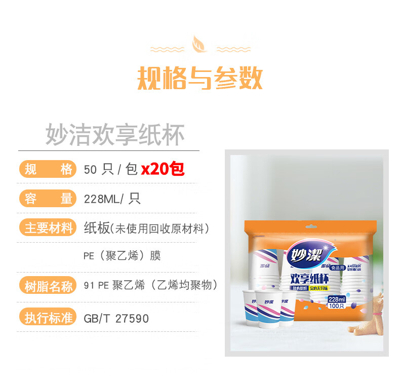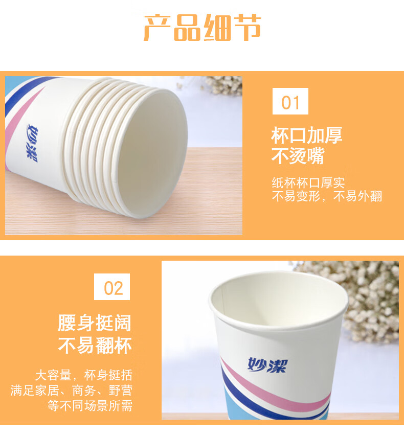 “MIAOJIE/妙潔(妙潔)”MDCB100-B 歡享紙杯 單箱裝(一次性杯子加厚20包/箱)