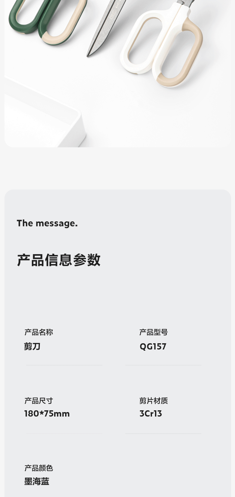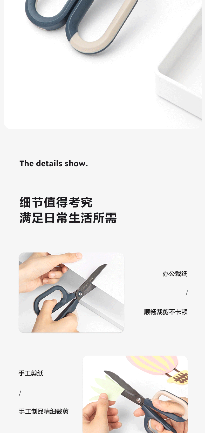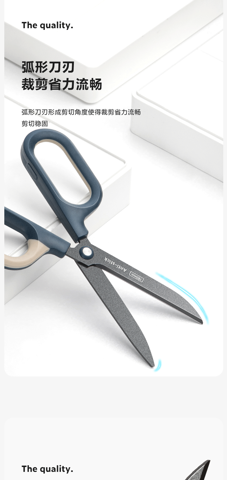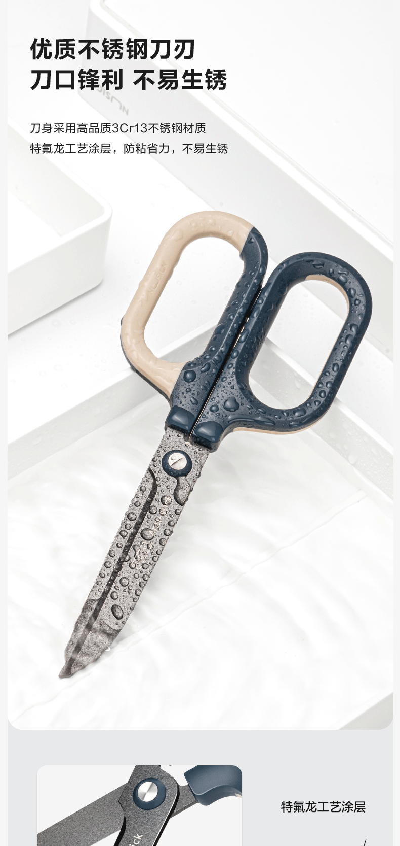 “NUSIGN/紐賽”QG157 剪刀 單把裝(藍(lán)色大號(hào)弧形特氟龍省力德國(guó)創(chuàng)意設(shè)計(jì)特氟龍防粘膠復(fù)古色系雙拼色設(shè)計(jì))