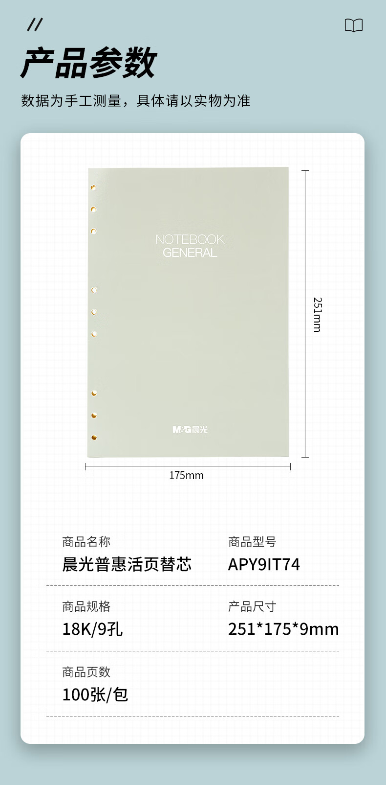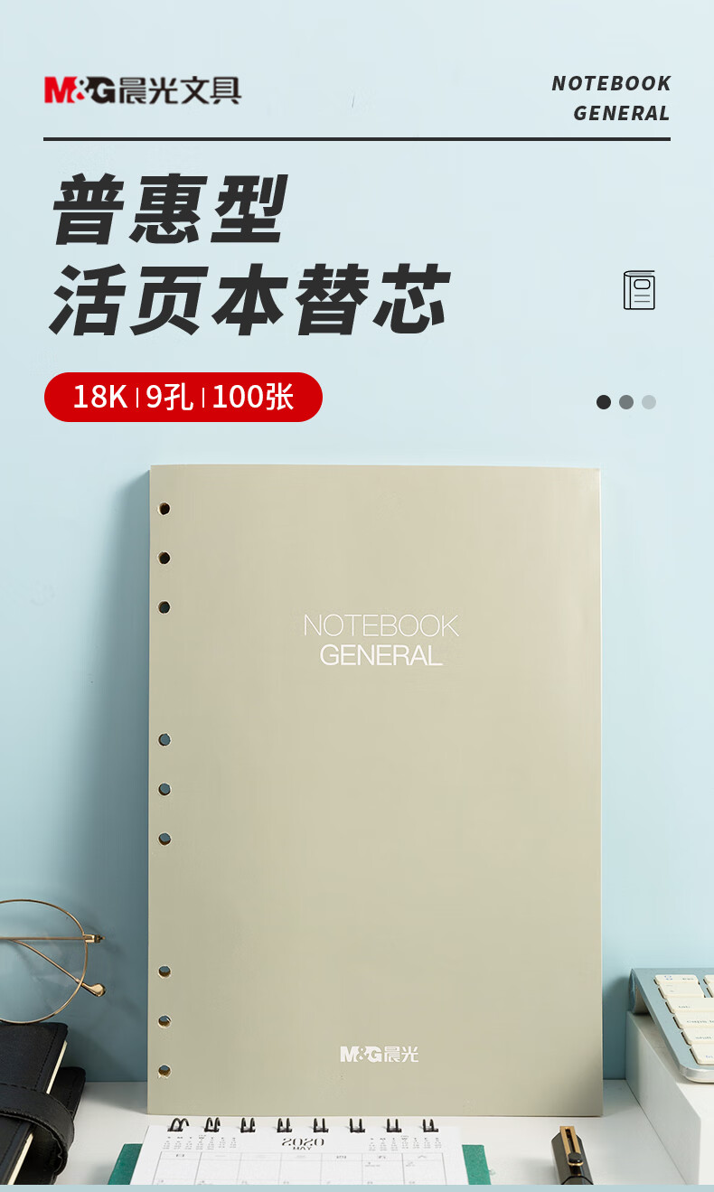 “M&G/晨光”APY9IT74 活頁替芯 單本裝(文具18K橫線活頁本子替芯9孔線圈紙活頁筆記本替換內(nèi)芯100頁/本)