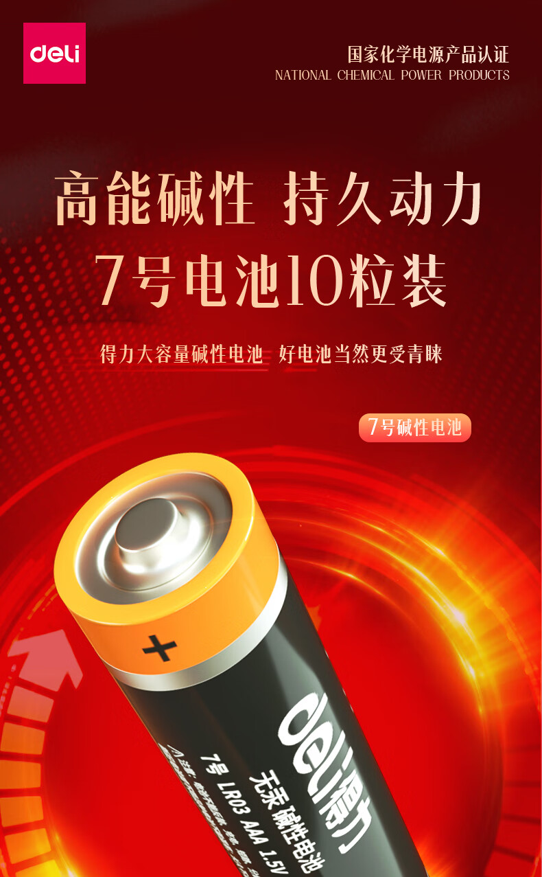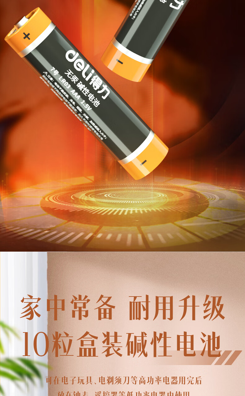 “deli/得力”No.18506 無汞堿性電池 單盒裝(適用耳溫槍/血糖儀/無線鼠標(biāo)/遙控器/血壓計(jì)/掛鐘/血氧儀等干電池10粒/盒)