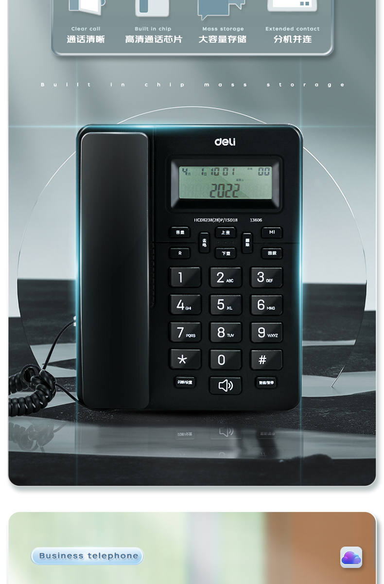 “deli/得力”No.13606 電話機(jī) 單部裝(黑色HCD6238(20)P/TSDL 22座機(jī)固定電話辦公家用來去電查詢可接分機(jī))
