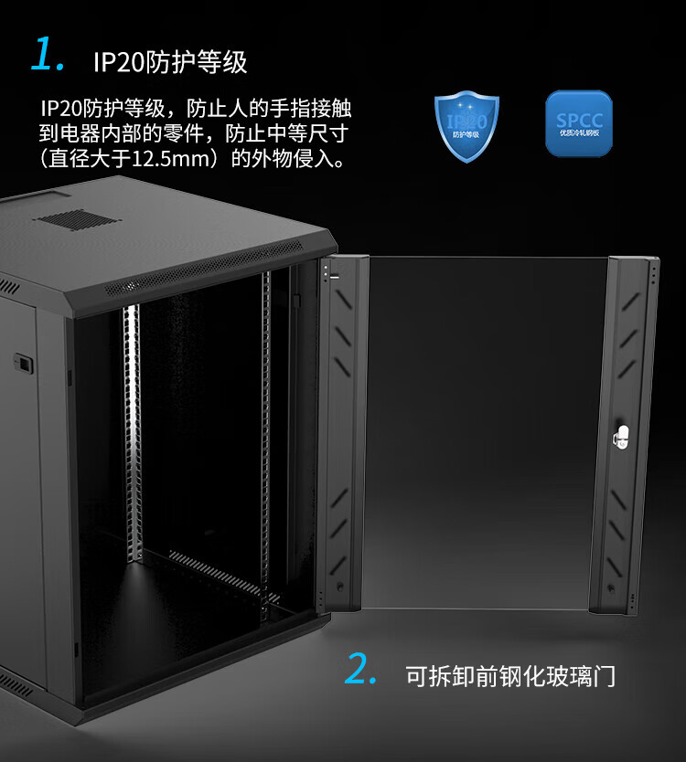 “TOTEN/圖騰”W26615 機柜 單個裝(黑色網(wǎng)絡(luò)弱電掛墻柜壁掛式可落地側(cè)門可拆卸前玻璃門19英寸15U)