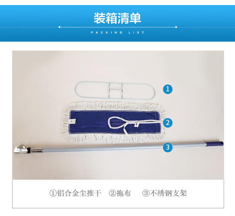 “BAIYUN CLEANING/白云清潔”AF01001 塵推 單個裝(120cm排拖整套酒店物業(yè)商用平板拖把棉紗線清潔排拖地拖)