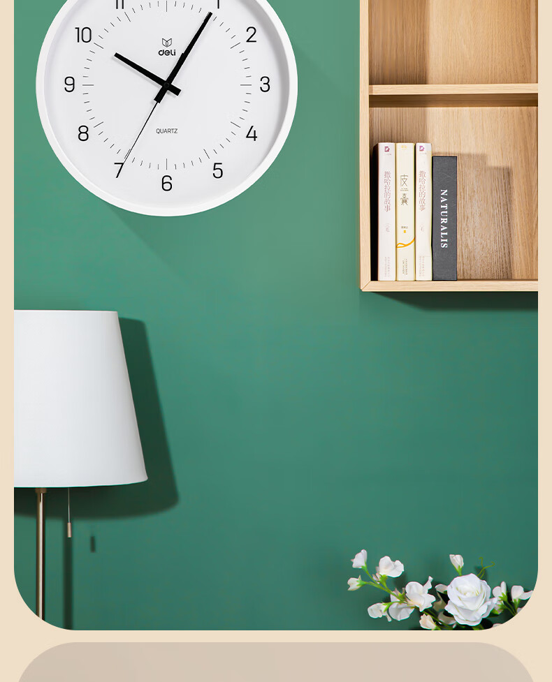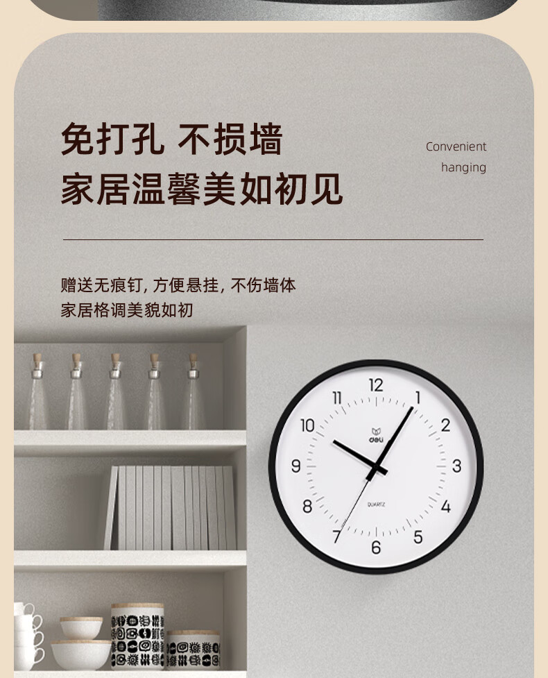 “deli/得力”LE402 掛鐘 單個裝(黑色簡約時尚臥室客廳時間提醒免打孔大表盤)