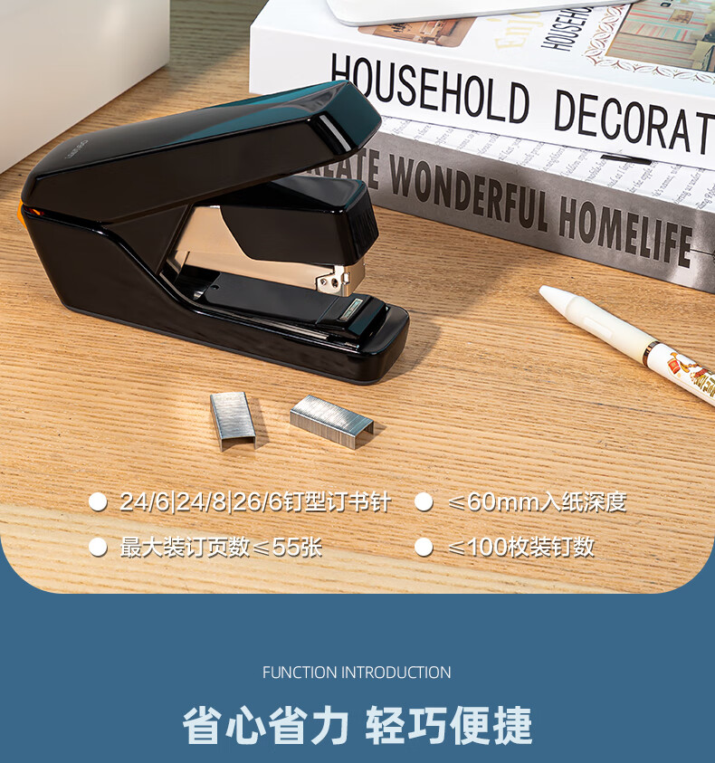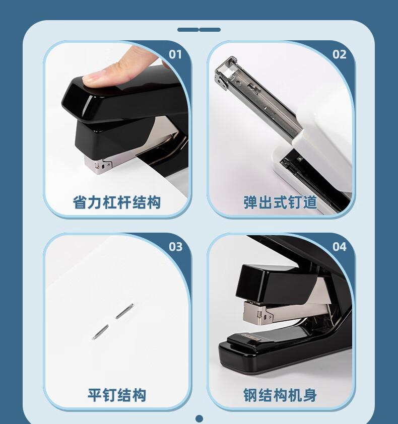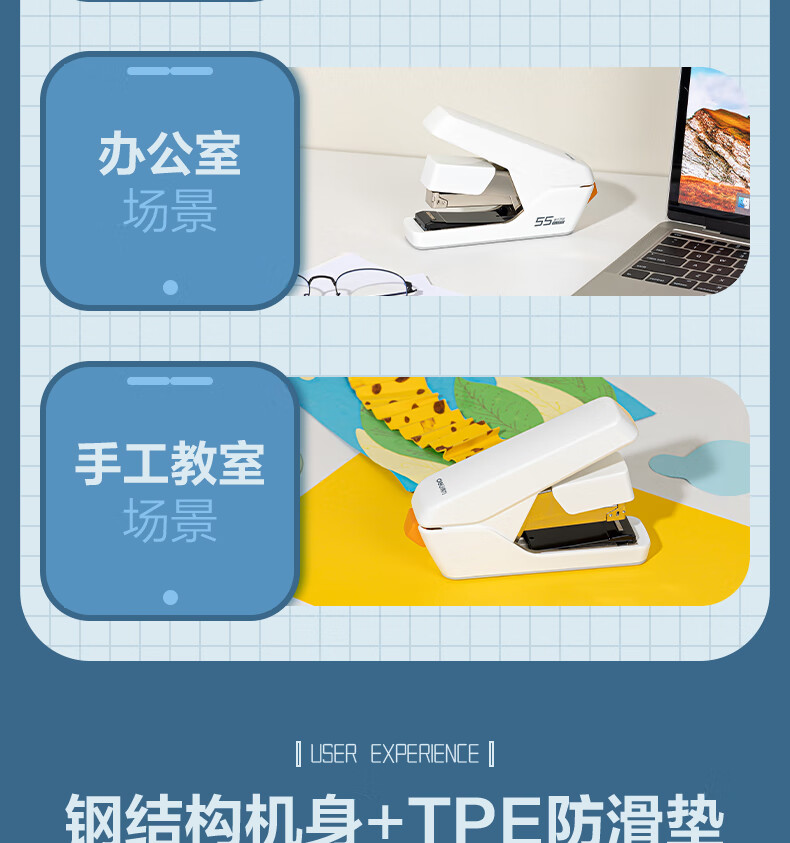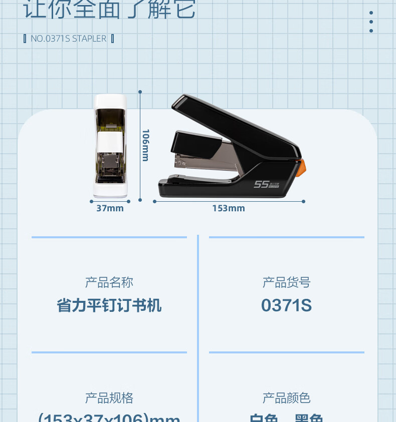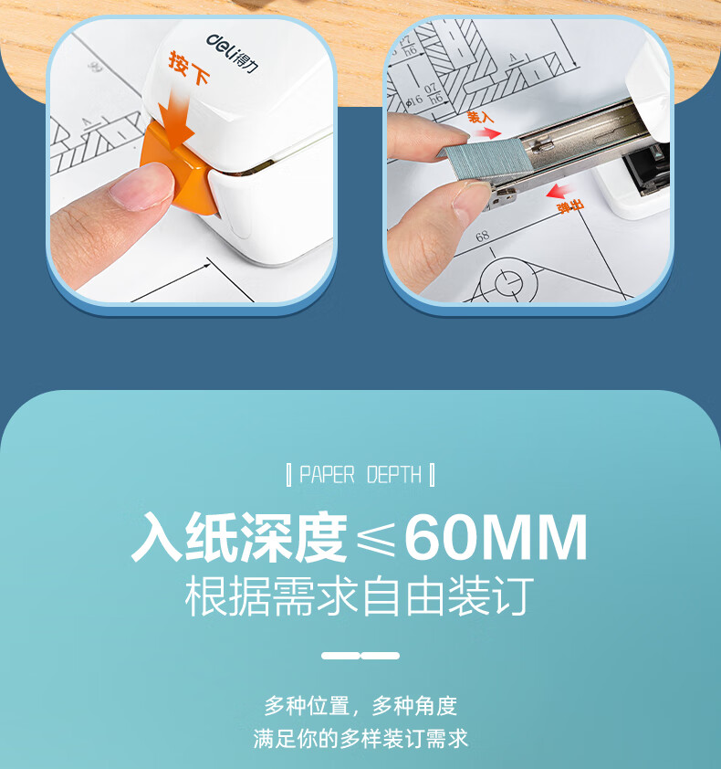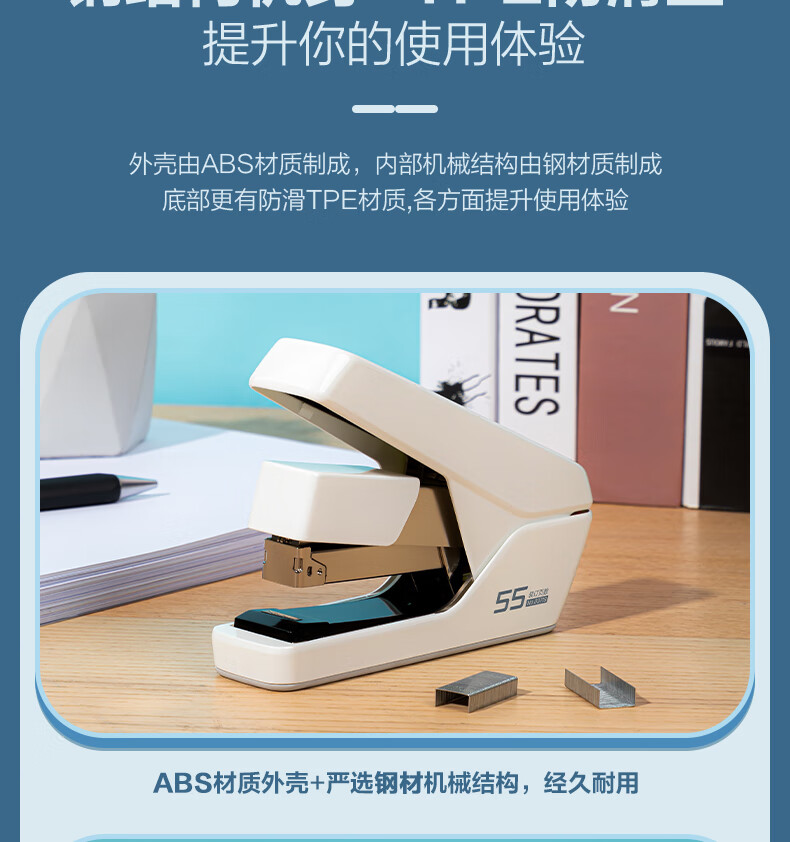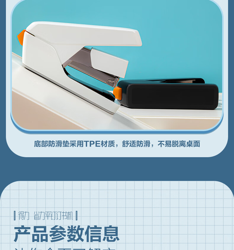 “deli/得力”No.0371S 訂書(shū)機(jī) 單臺(tái)裝(白色55頁(yè)平釘省力訂書(shū)器防卡釘彈出式釘?shù)肋m配24/6、24/8釘)