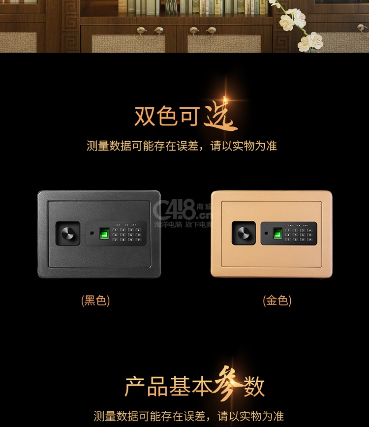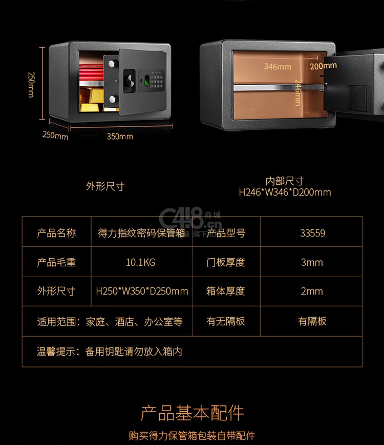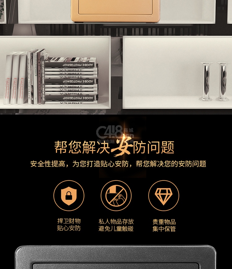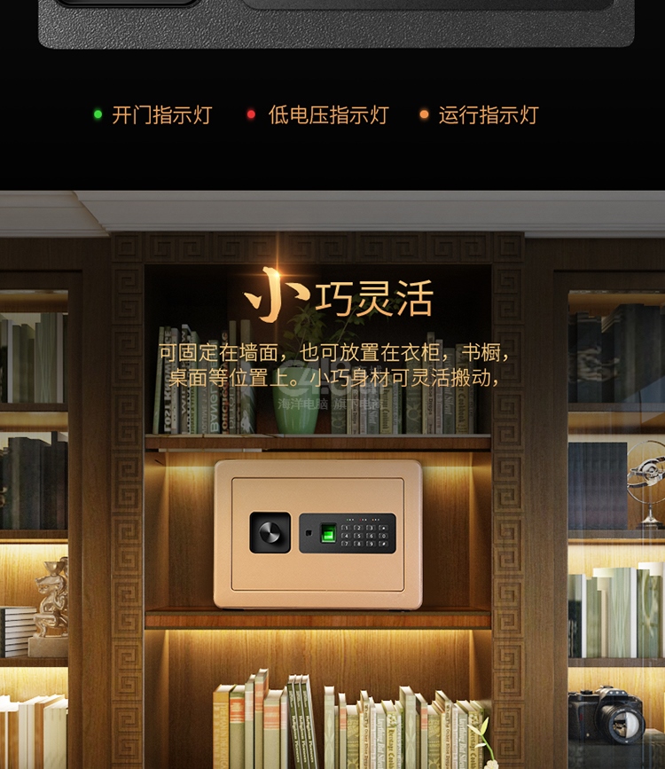 “deli/得力”No.33559 保險柜 單個裝(黑色高25CM指紋+密碼小型保險箱可入墻入柜證件首飾存儲保管箱)