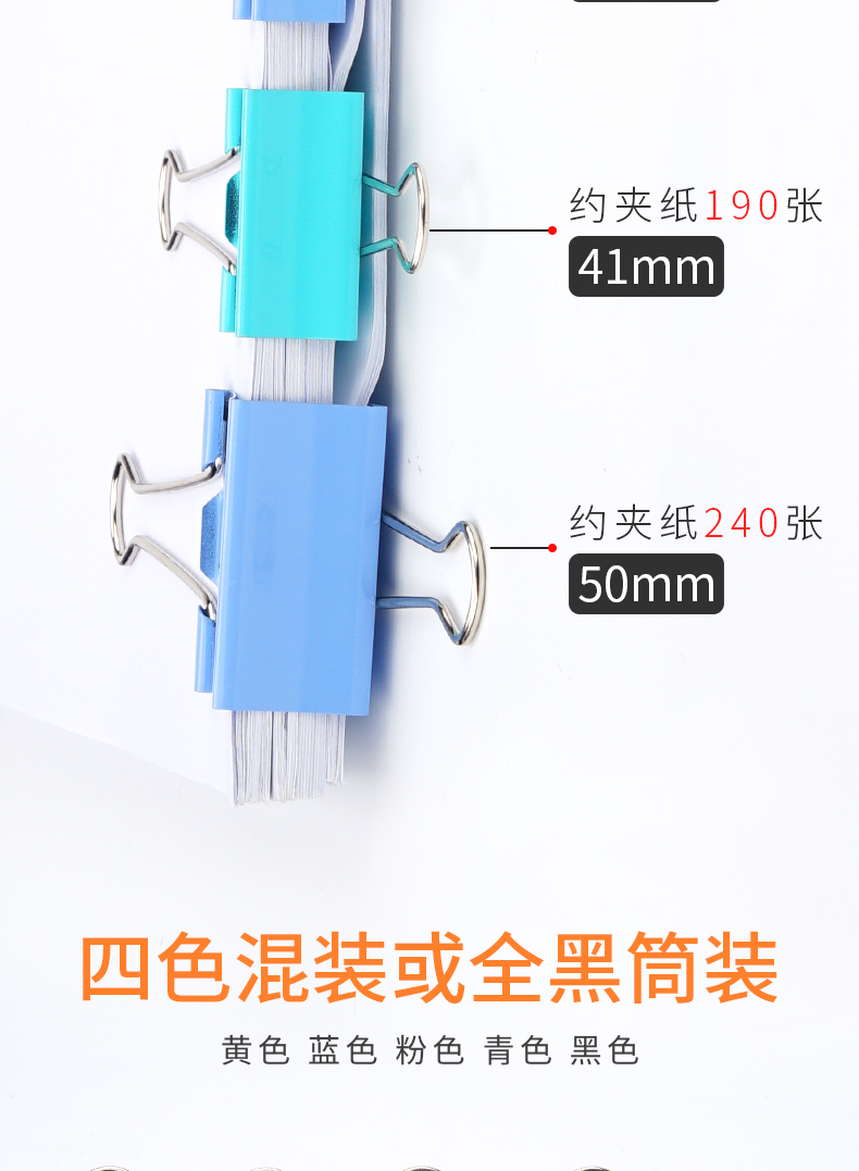 “depli/得培力”D-12 長尾夾 1盒裝(彩色燕尾夾票夾2號41mm 24個/盒)