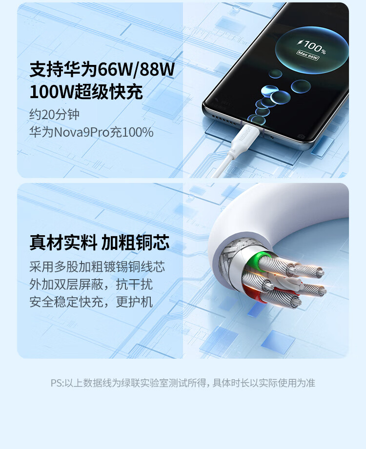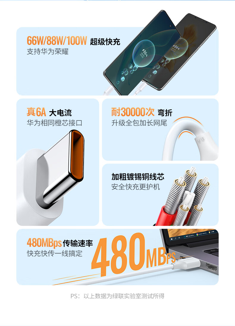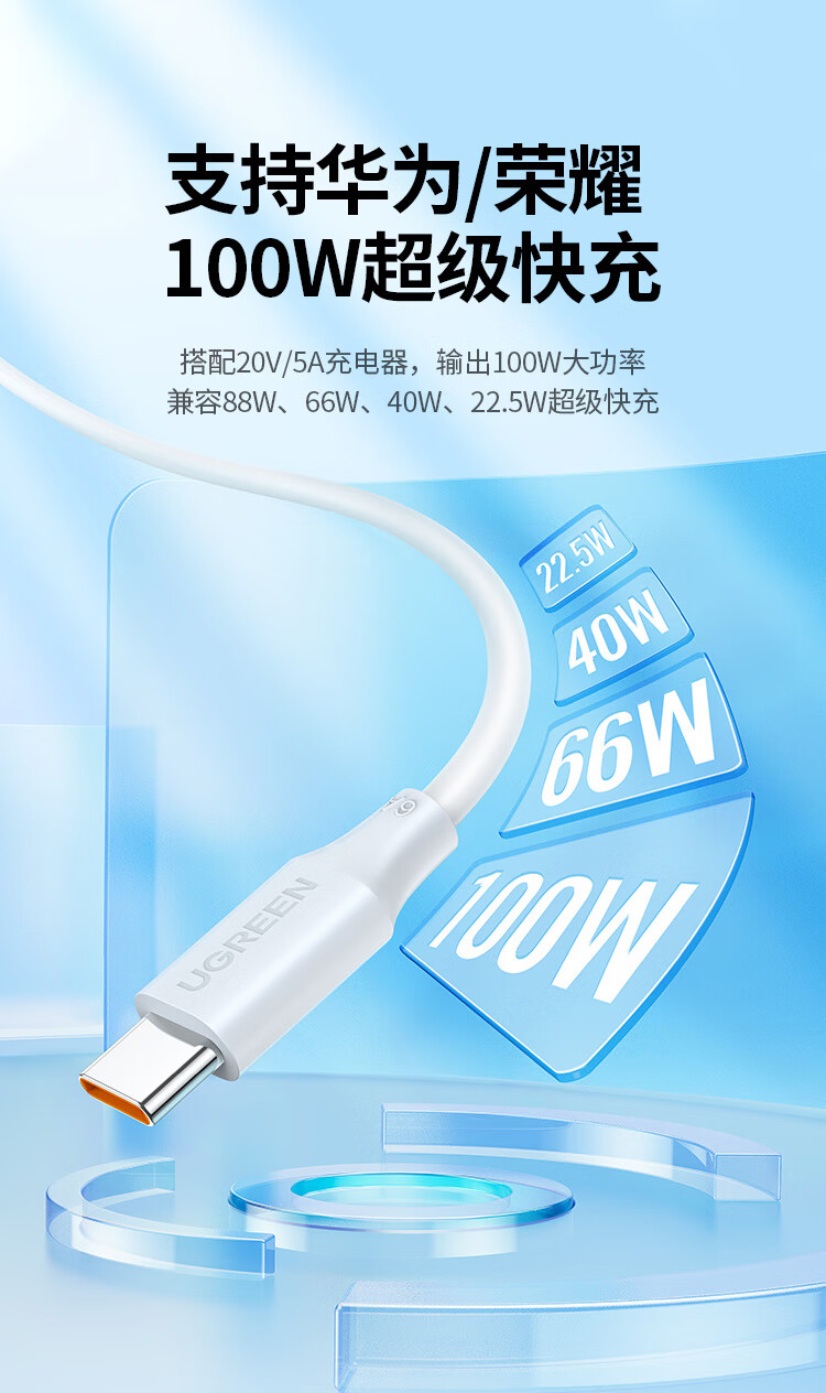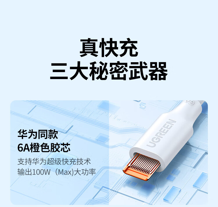 “UGREEN/綠聯(lián)”40204 充電線 單條裝(白色Type-C數(shù)據(jù)線6A適用華為超級快充100W/66W/Pura70/X/Mate70/60Pro+/X6榮耀小米安卓手機1.5米)