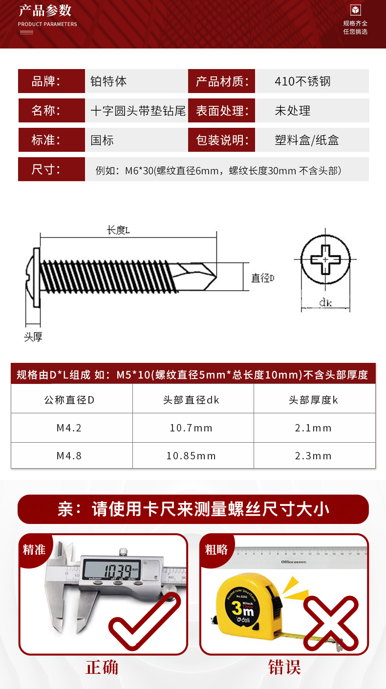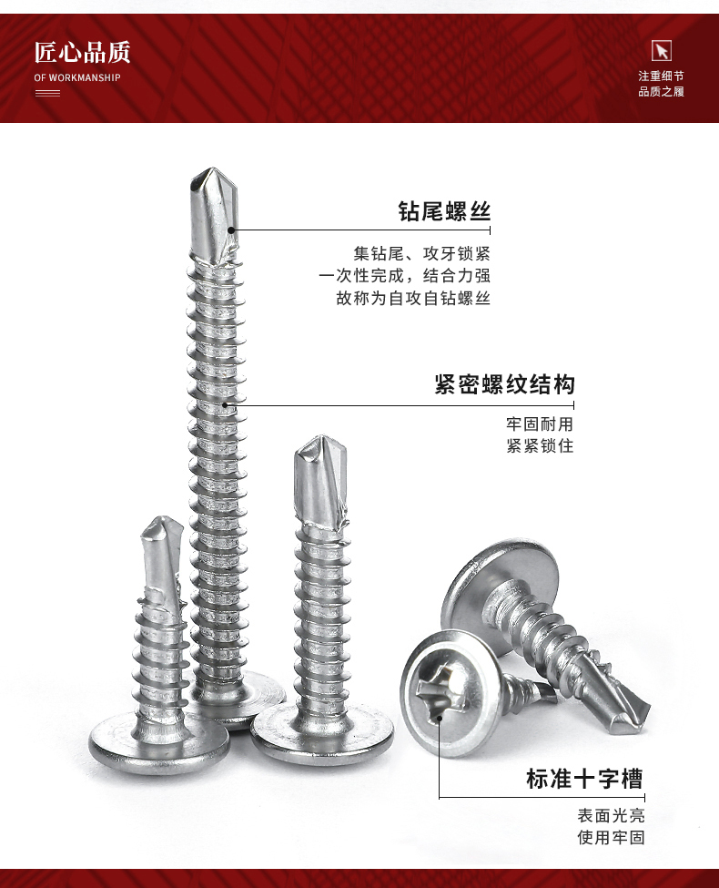 “BO TE TI/鉑特體”M4.2*16 不銹鋼自攻螺絲 單包裝(十字槽圓頭自鉆自攻螺釘燕尾螺絲釘鉆尾螺絲200顆/包)