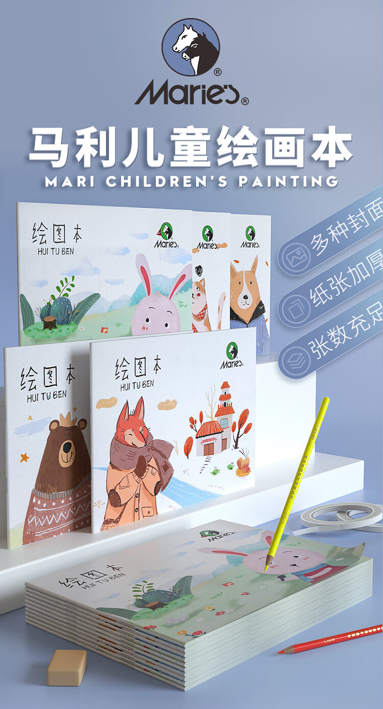 “Marie’s/馬利”H-D0082 繪圖本 單本裝(A4兒童空白圖畫本混裝幼兒園繪圖本小學(xué)生美術(shù)繪畫涂鴉本畫畫紙美術(shù)畫本5本/組)