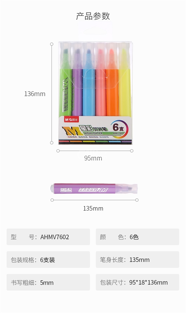 晨光(M&G)文具星彩系列6色熒光筆學(xué)習(xí)標(biāo)記記號筆 6支/盒AHMV7602