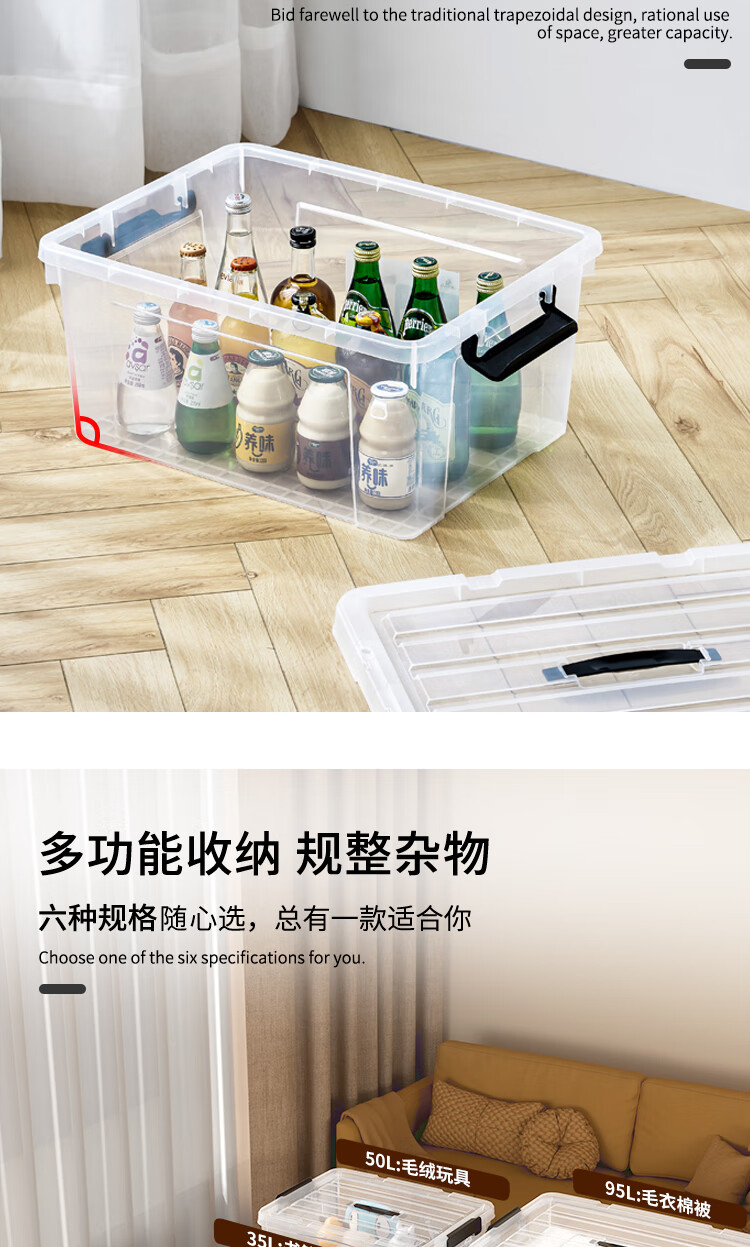 “SPACEXPERT”50L 帶提手 收納箱 1個裝(透明衣物塑料整理箱)