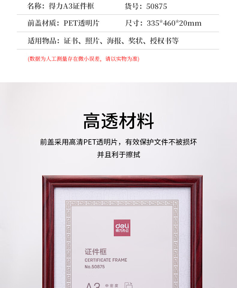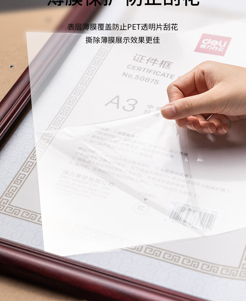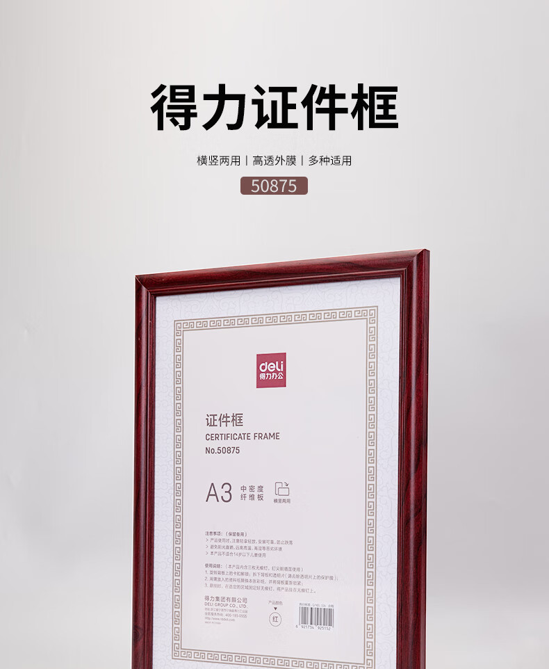 “deli/得力”50875 證件框 1個(gè)裝(紅色營業(yè)執(zhí)照相框/工商登記證框/橫豎證件相框畫框證書框)