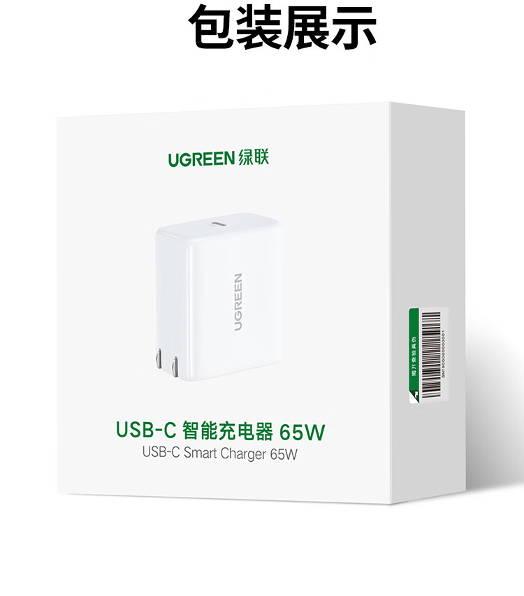 “UGREEN/綠聯(lián)”CD127 40721 充電器 單個裝(PD65W兼容45W快充頭適用MacBook筆記本電腦蘋果iPhone16e15promax手機iPad平板Type-C插頭)