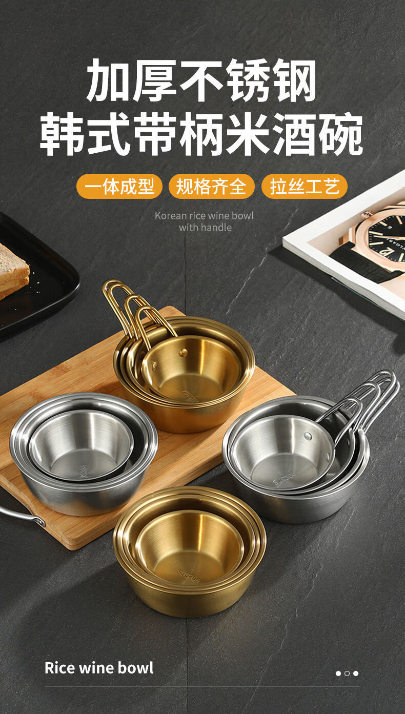 “CHUXIANDE/廚先得”10cm無(wú)柄 不銹鋼碗 1個(gè)裝(本色韓式米酒碗304不銹鋼飯碗蘸料碗烤肉調(diào)料碗)