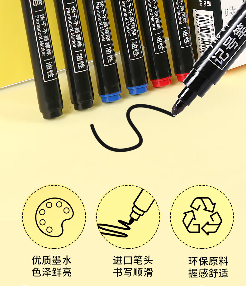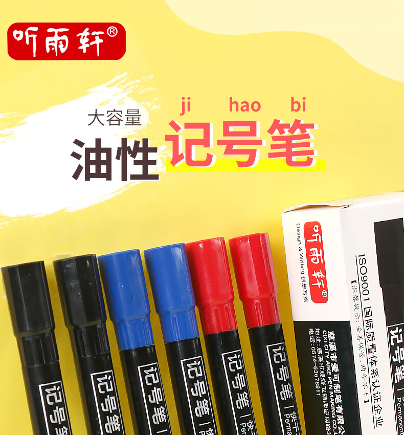 “聽(tīng)雨軒”NO.1129 記號(hào)筆 單支裝(黑色油性記號(hào)筆勾線筆彩色馬克筆防水不掉色快遞大頭筆不可擦粗筆快遞專(zhuān)用10支/盒)