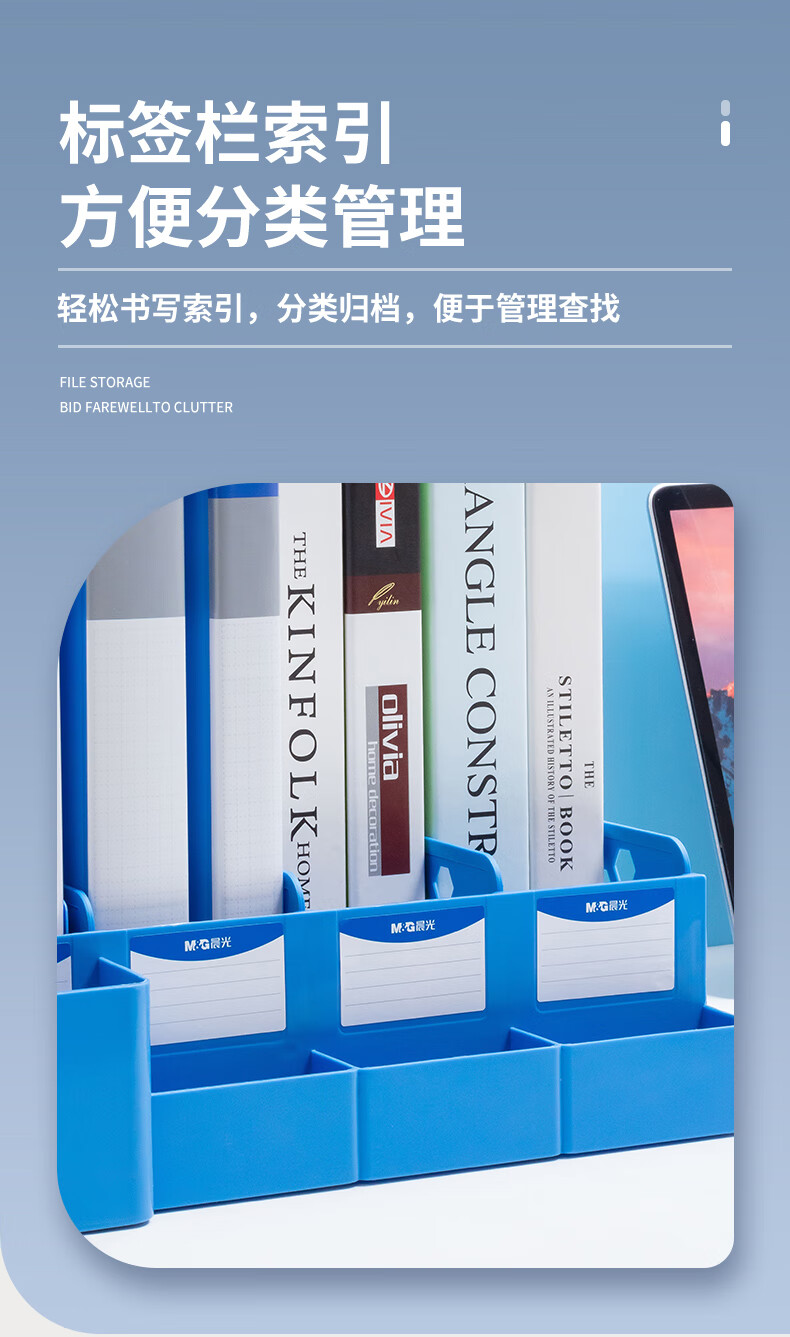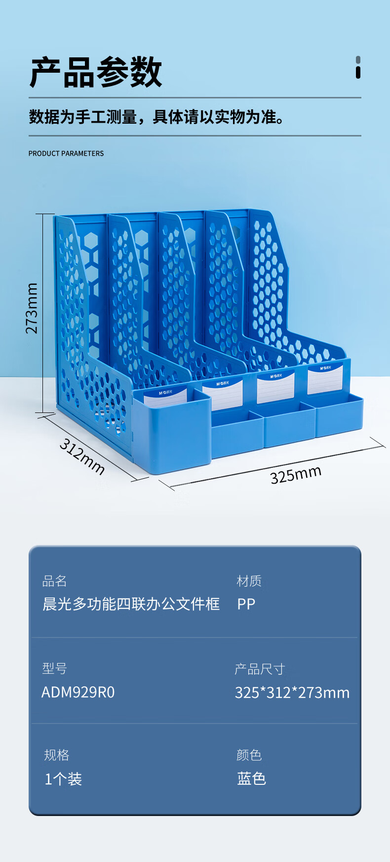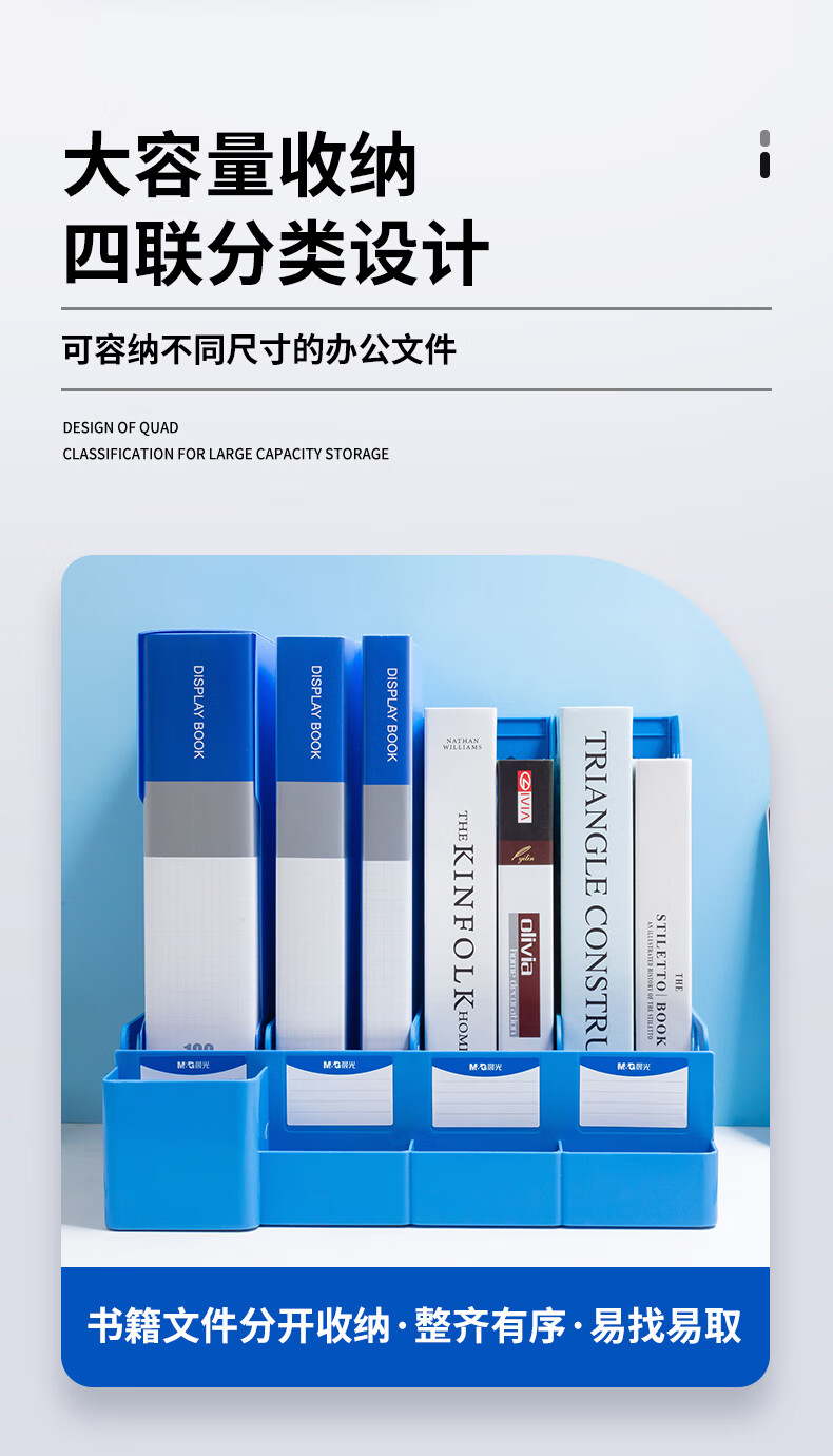 “M&G/晨光”ADM929R0B 文件框 單個裝(藍(lán)色文具四聯(lián)帶筆筒收納桌面多功能文件架/文件欄/文件框/資料筐)