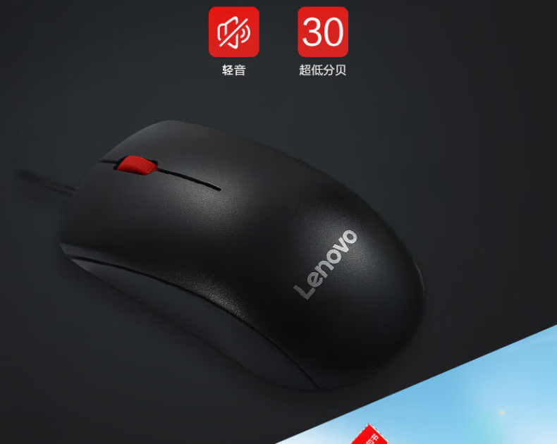 “Lenovo/聯(lián)想”M220L 有線鼠標(biāo) 單個裝(黑色筆記本臺式一體機(jī)大紅點(diǎn))