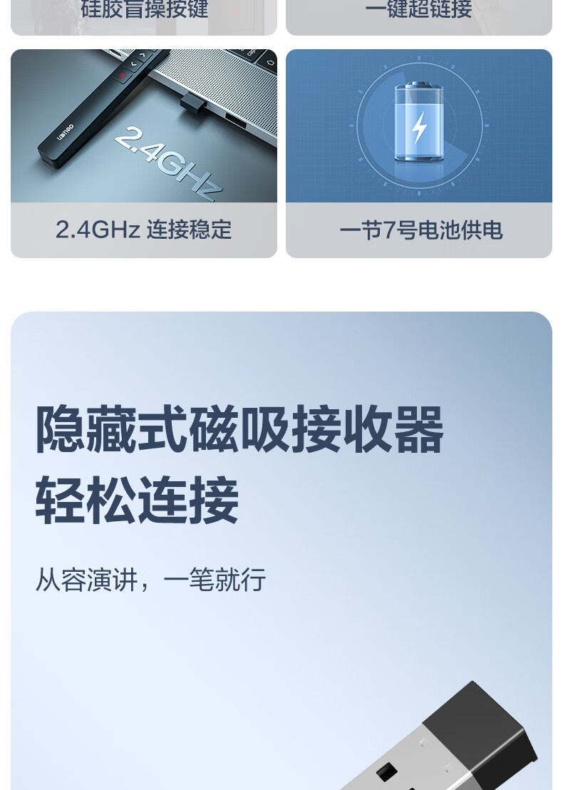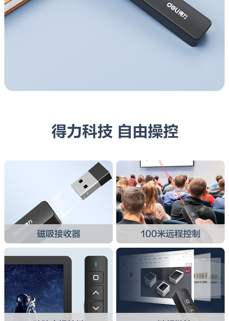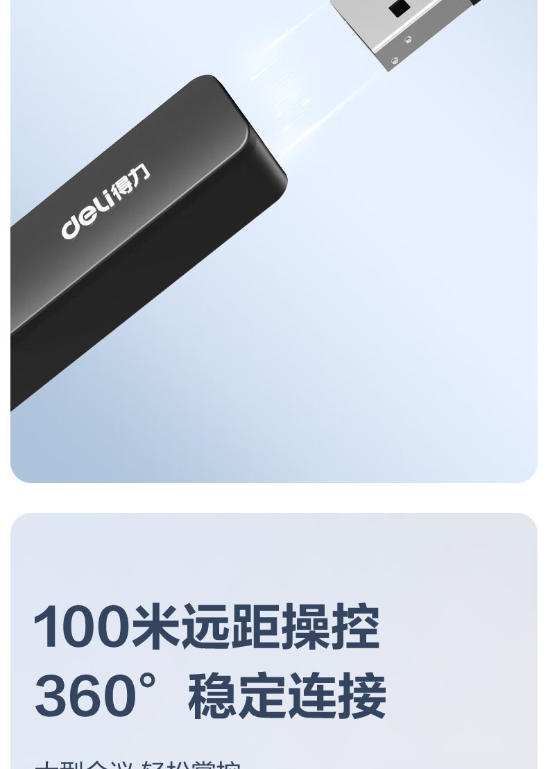 “deli/得力”MA58 激光翻頁筆 單支裝(黑色紅光教師用ppt投影筆激光筆演講筆無線演示翻頁器課件筆)