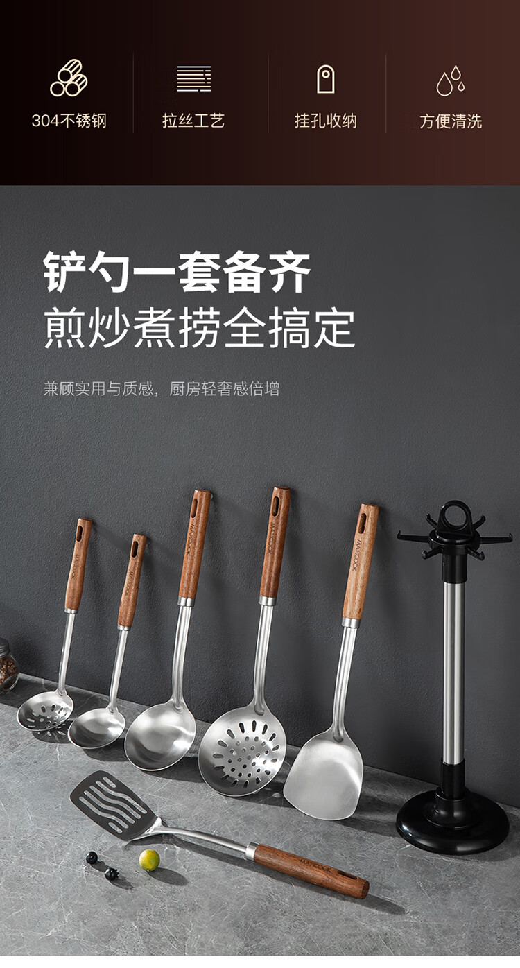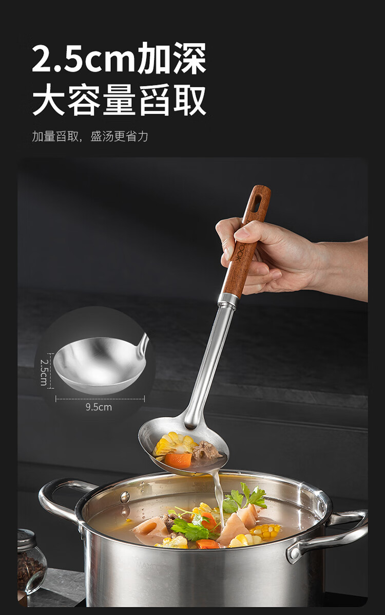 “maxcook/美廚”MCCU8267 湯勺 單個裝(304不銹鋼大湯勺加厚勺子長柄炒菜勺粥勺)