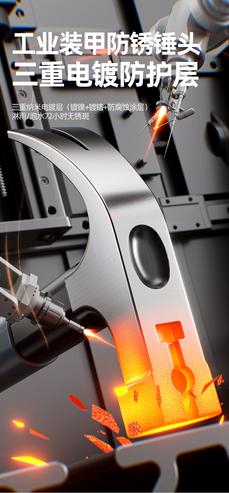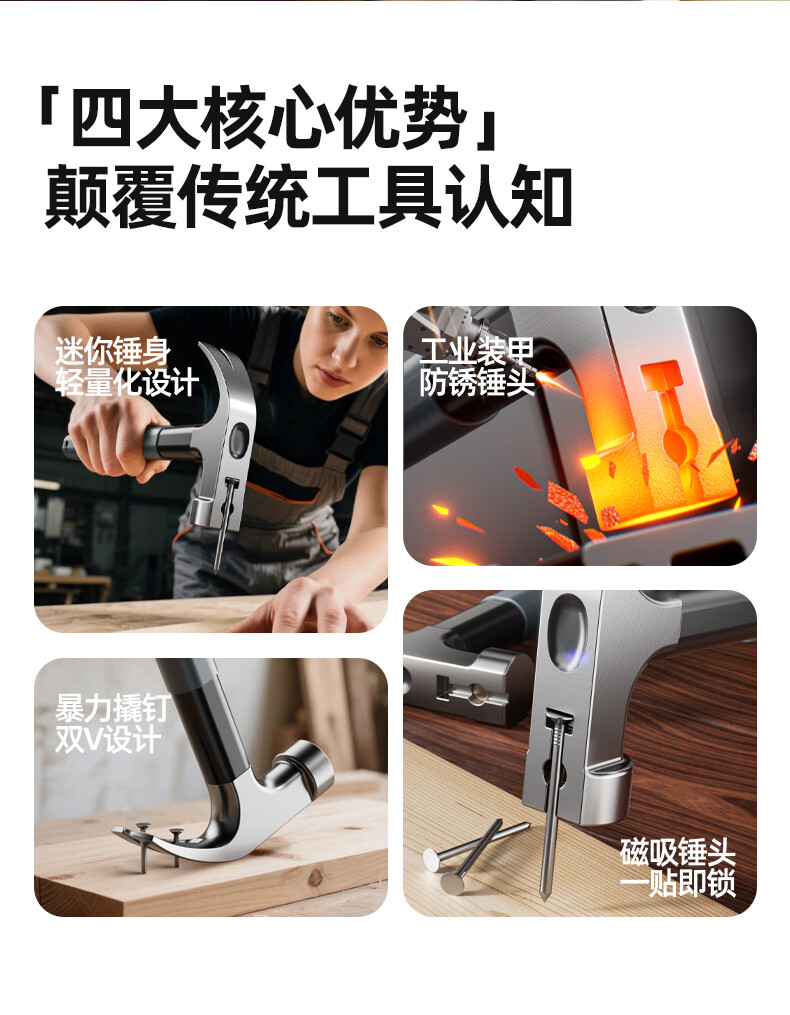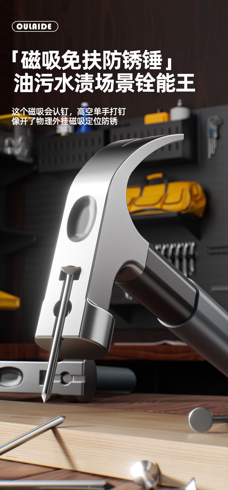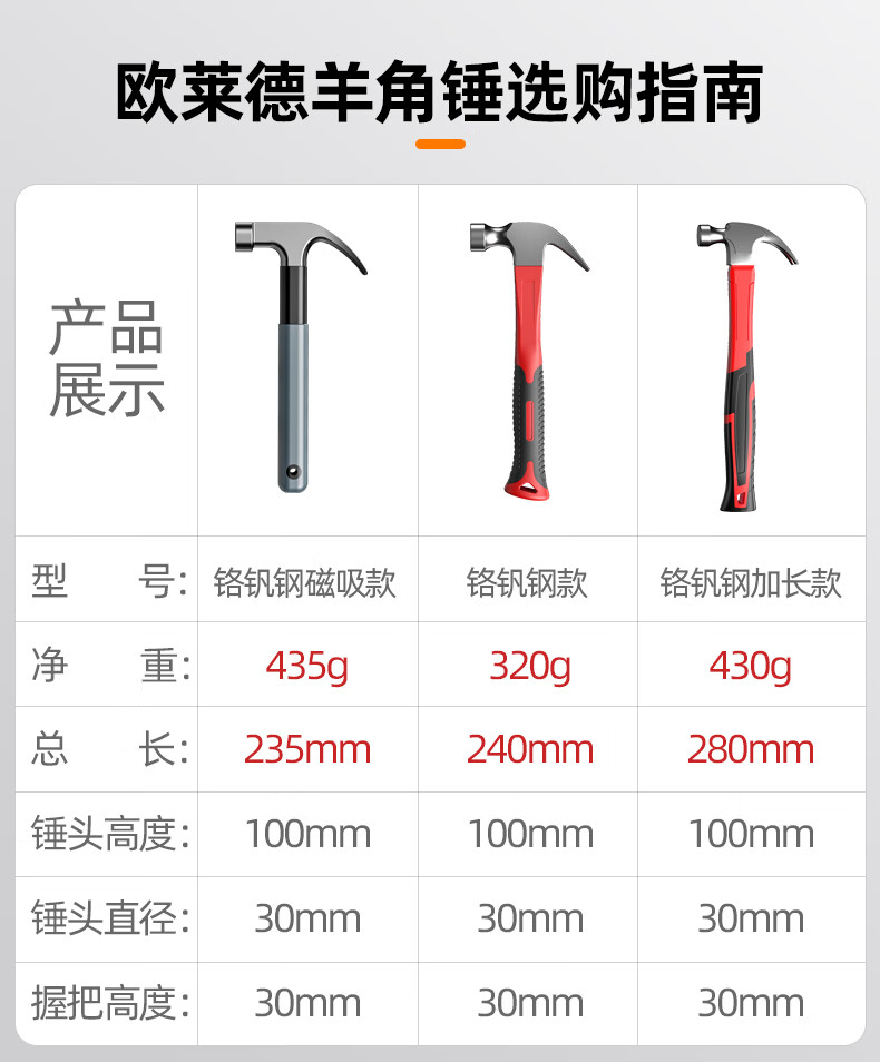“OULAIDE/歐萊德”鉻釩鋼 320G 羊角錘 1把裝(錘子多功能羊角錘木工專用起釘錘工具家用軟包膠手柄鐵錘榔頭鋼錘)