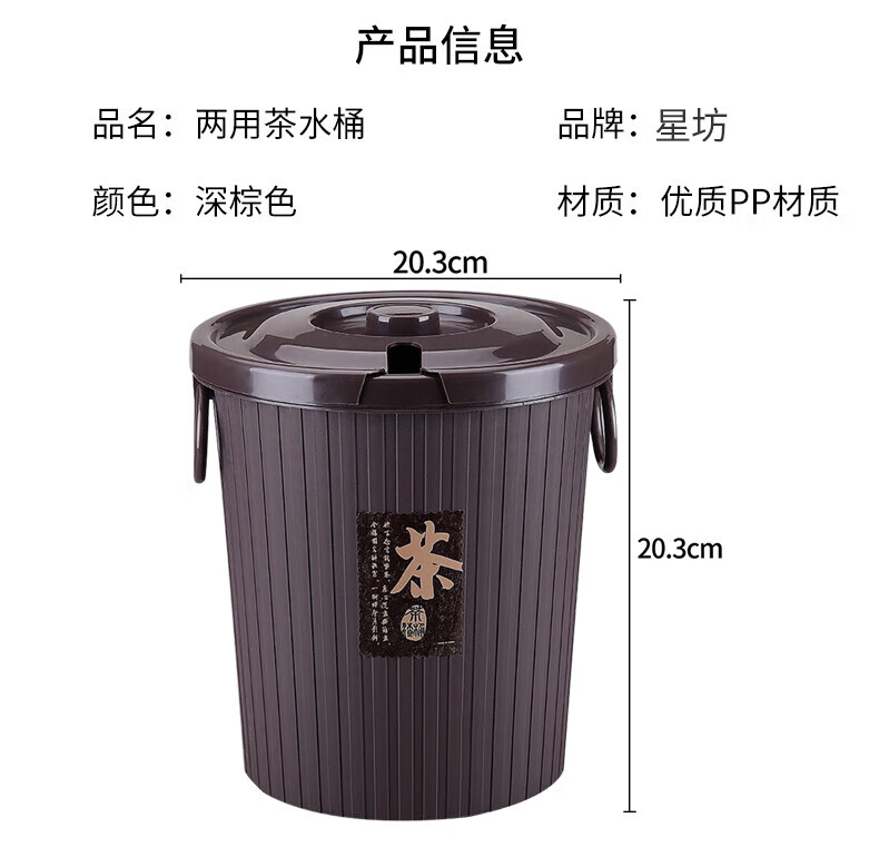 “星坊”圓形 茶渣桶 單個裝(茶水桶廢水桶濾茶桶茶渣茶葉泡茶具排水干濕分離垃圾桶)