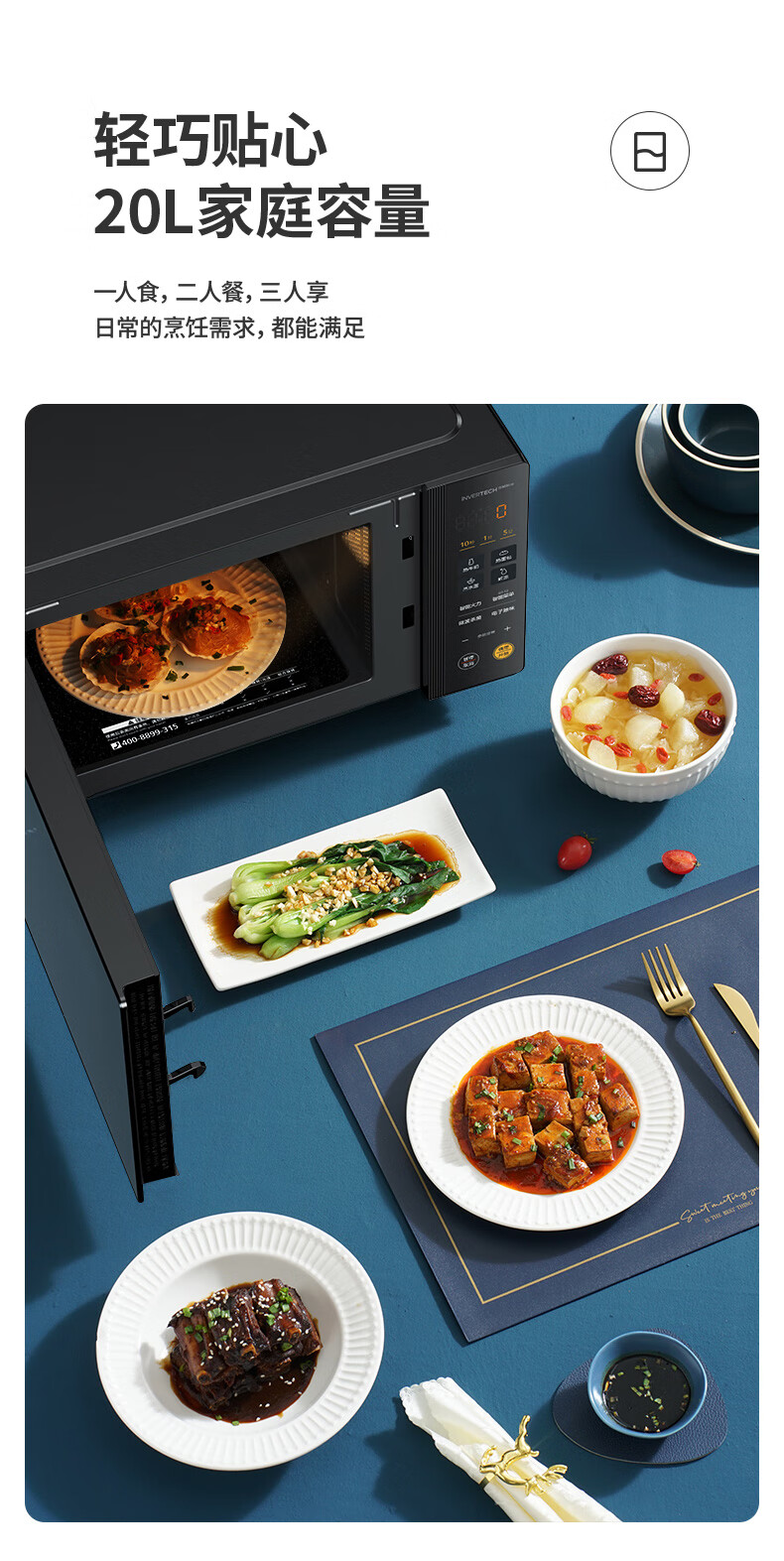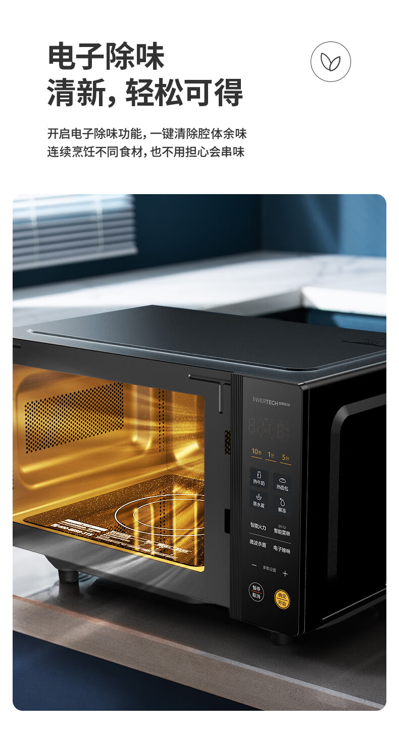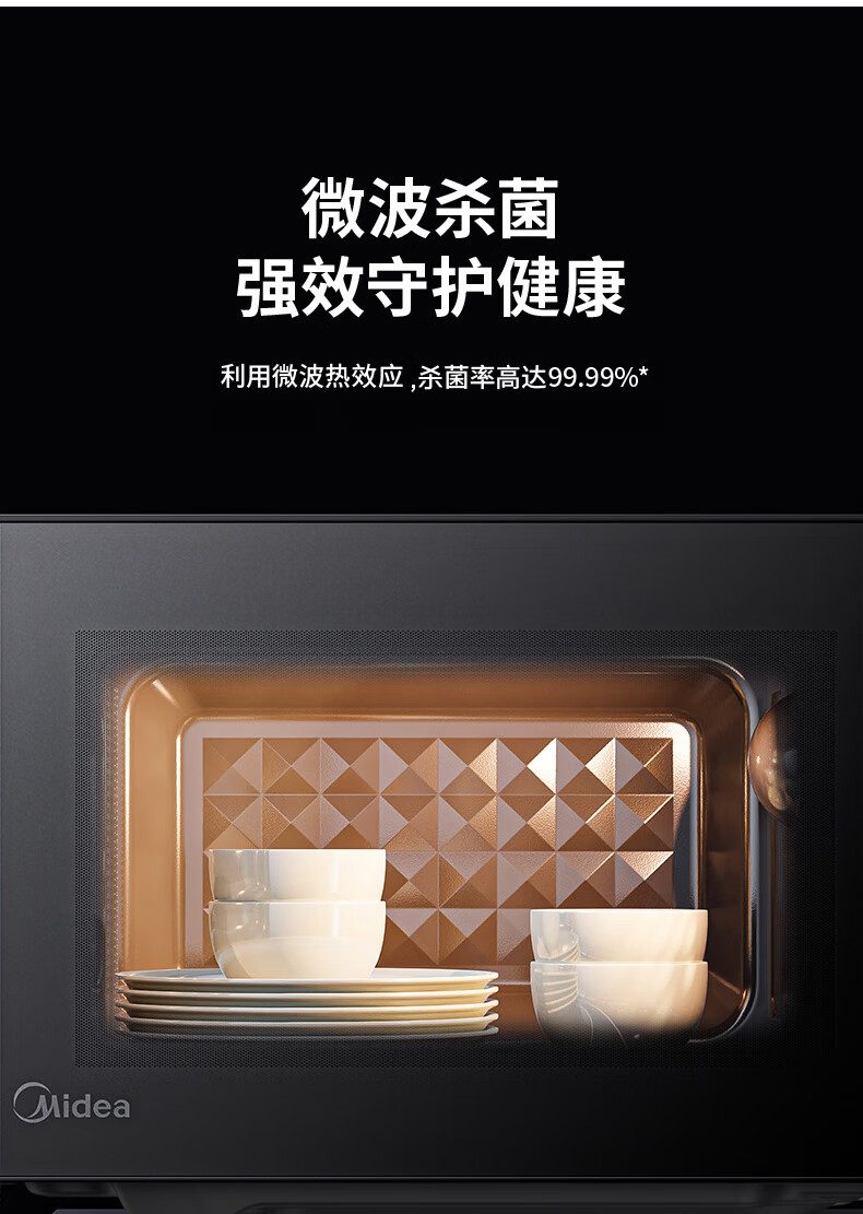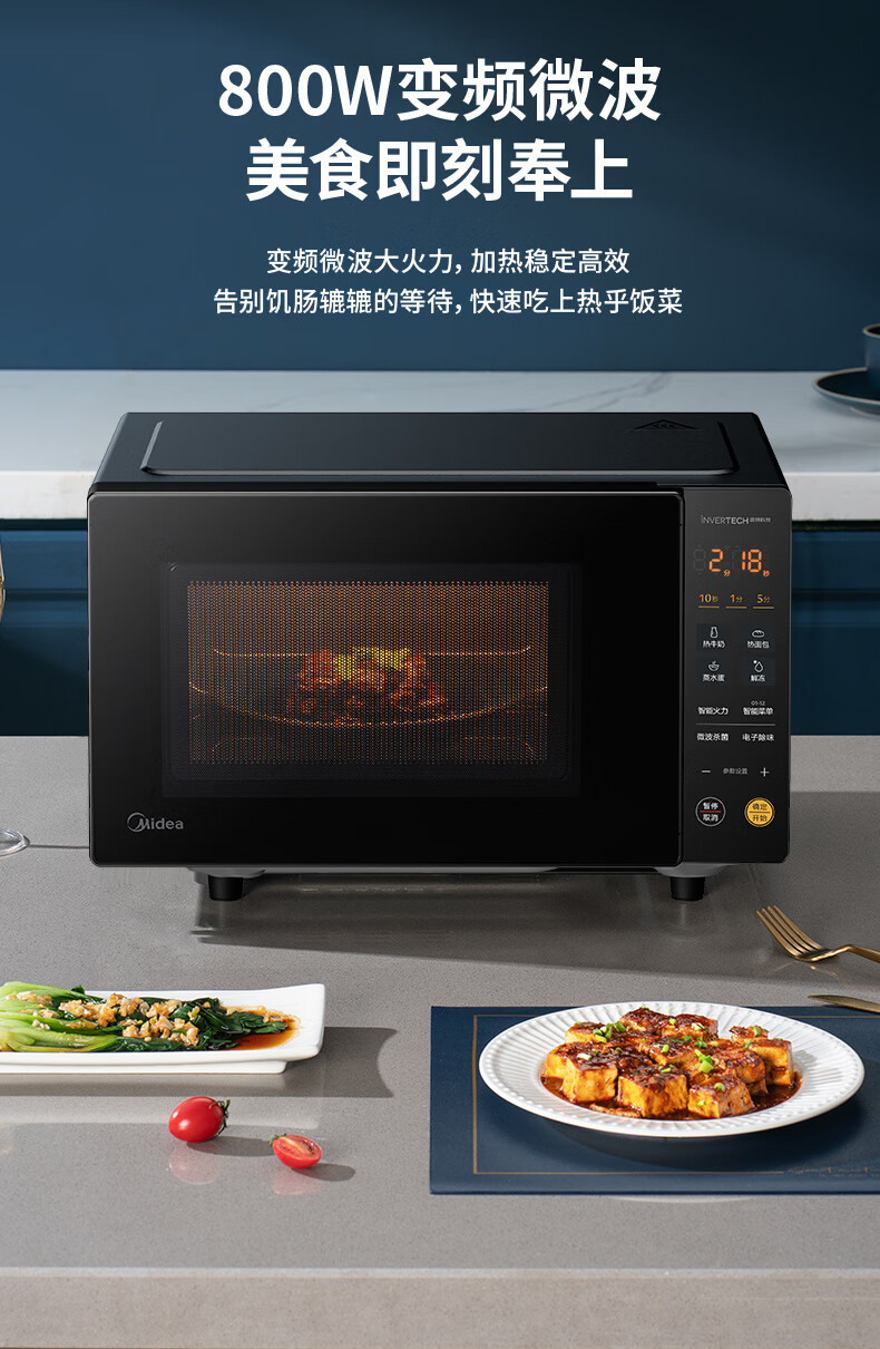 “Midea/美的”PM20M2 變頻微波爐 單臺裝(家用平板式易清潔800W微波速熱一鍵智能菜單鉆石背板微晶面板加熱20L)