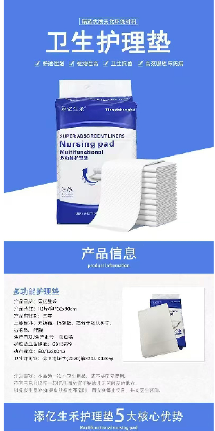 “添億生禾”TYSH-HLD-B1 多功能護(hù)理墊 單包裝(成人隔尿墊60*90cm中厚款老人舒適護(hù)理紙10片/包)