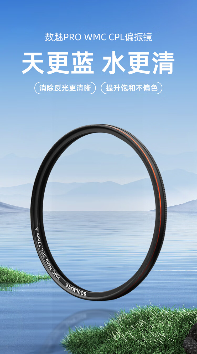 “SOULMATE/數(shù)魅”77mm cpl偏振鏡 1片裝(濾鏡高清雙面多膜濾鏡增加飽和度消除水面反光風(fēng)光攝影適用于佳能尼康索尼富士)