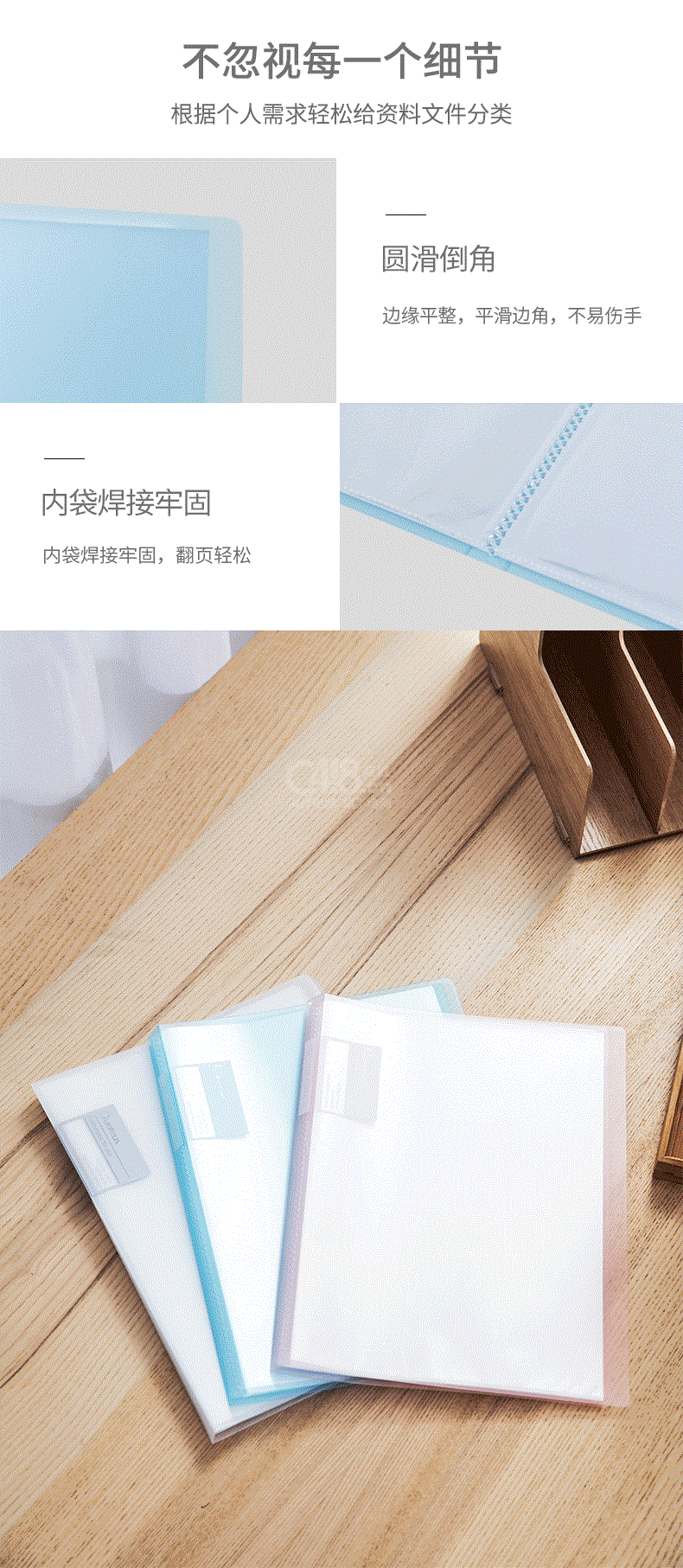 “deli/得力”72555 資料冊(cè) 一組裝(藍(lán)色30頁(yè)A4資料冊(cè)彩色多頁(yè)文件夾插頁(yè)袋試卷夾辦公用品3個(gè)/組)
