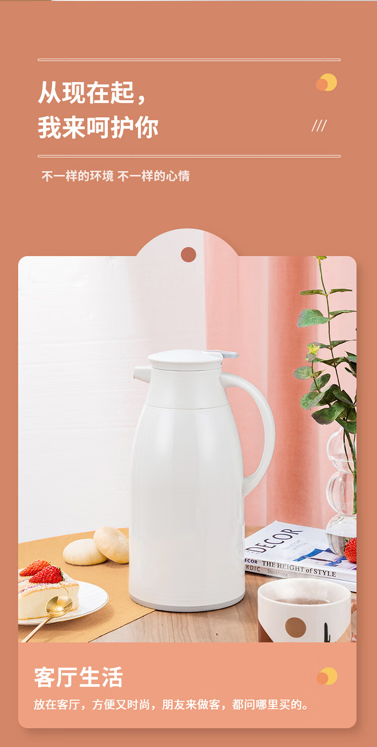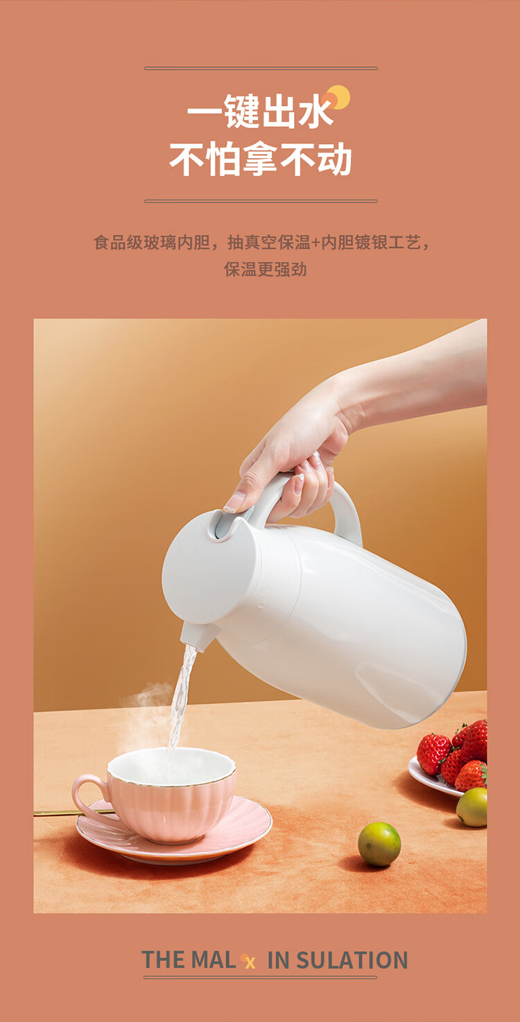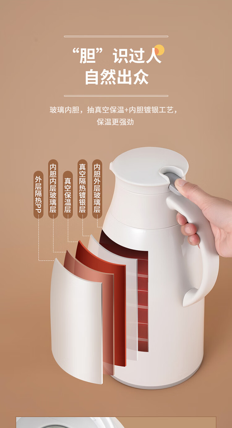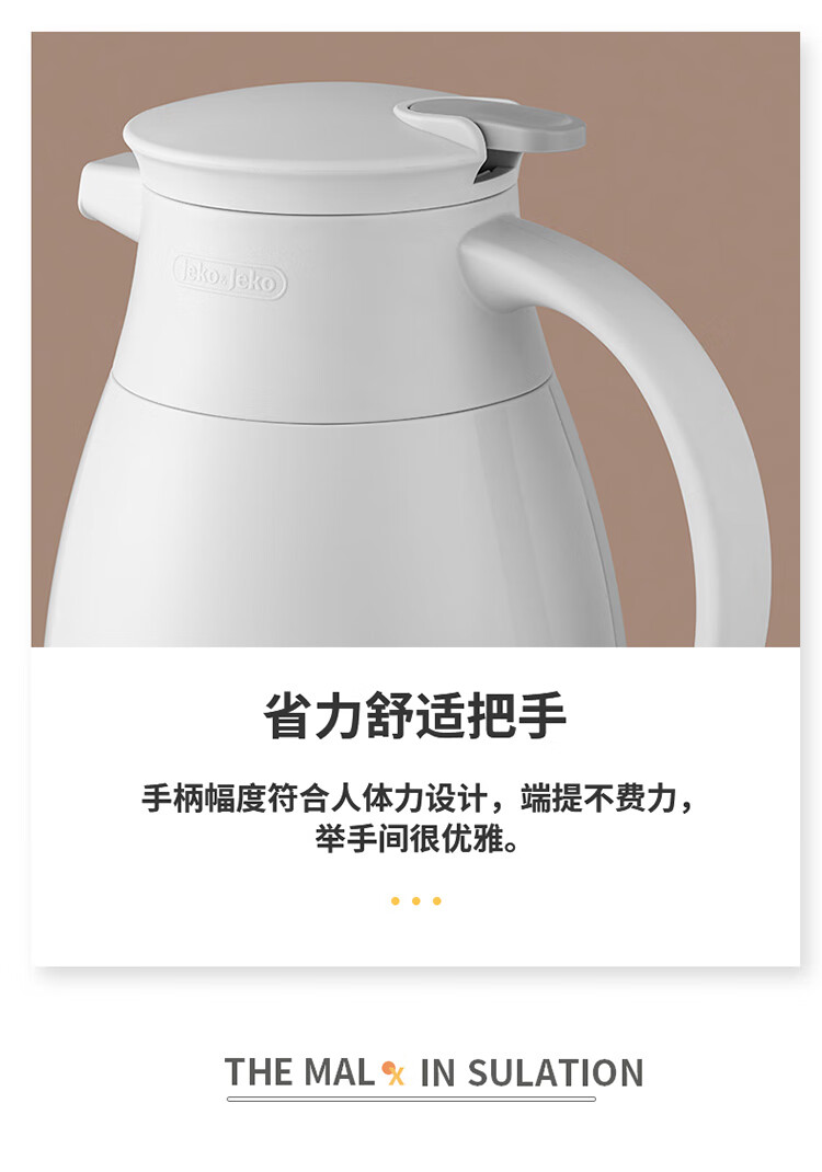 “Jeko&Jeko/捷扣”1.6L 保溫壺 單個裝(絲綢灰家用熱水瓶暖水壺宿舍大容量開水瓶玻璃內(nèi)膽)