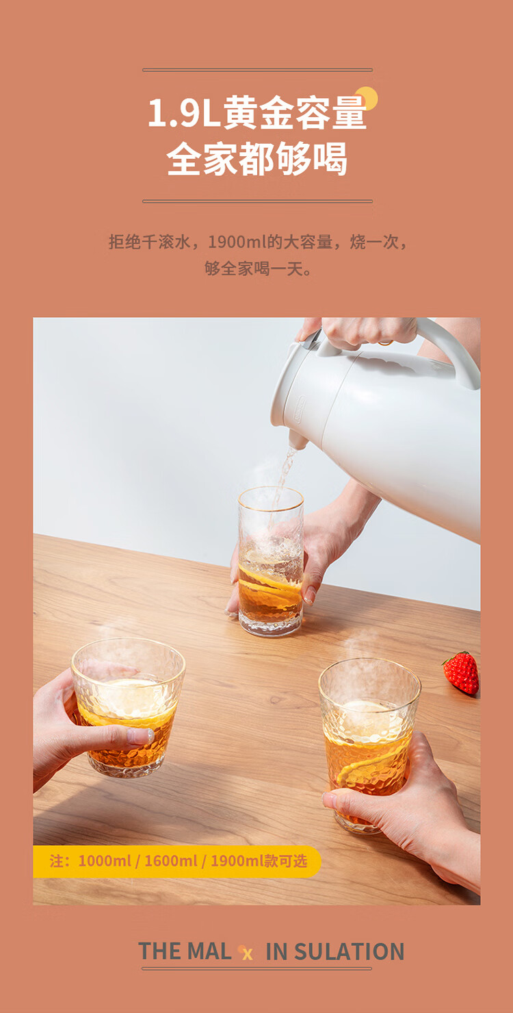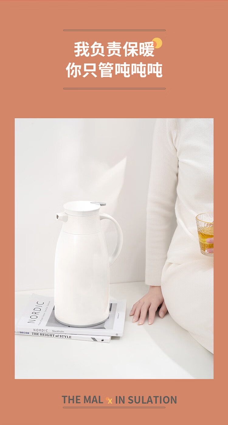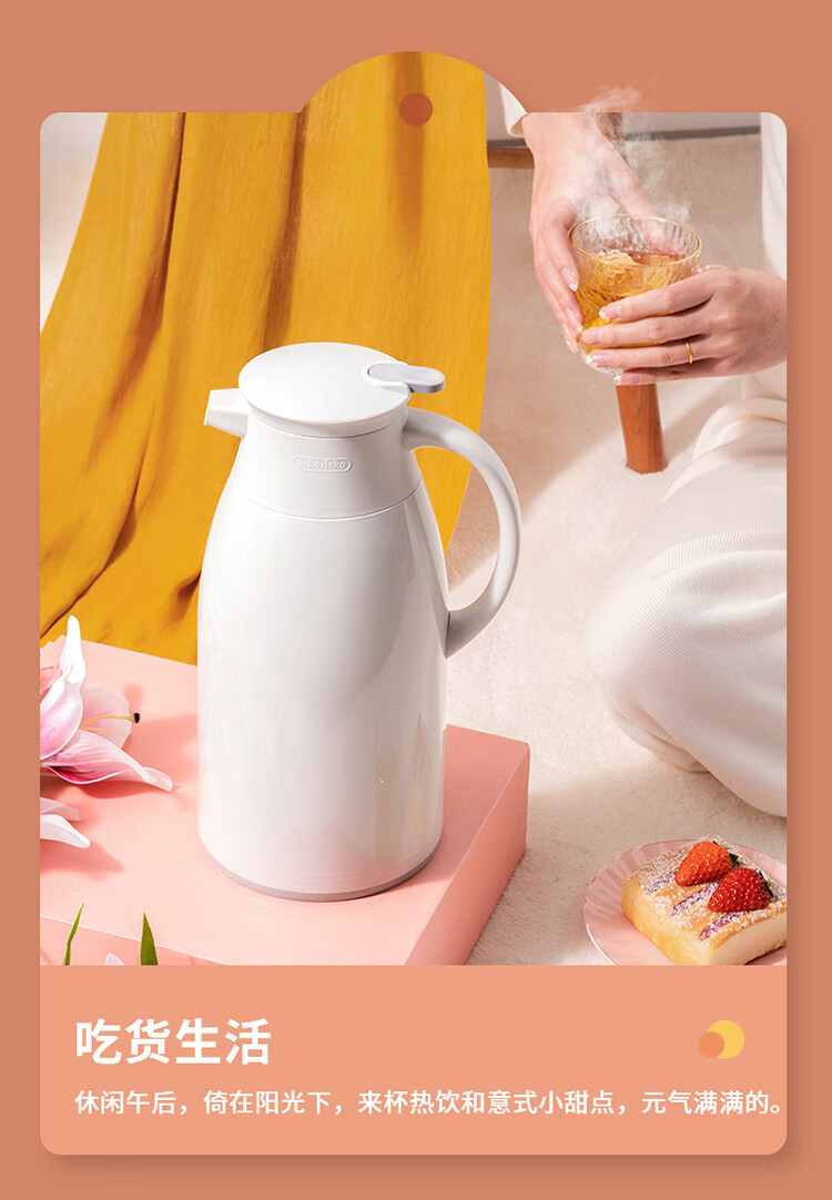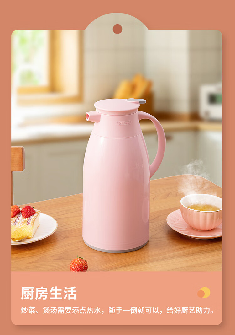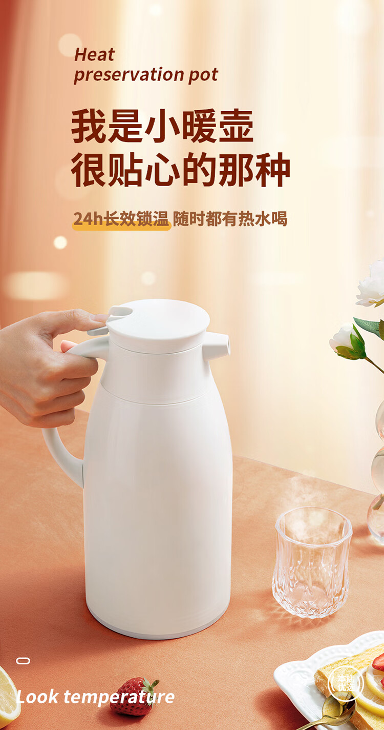 “Jeko&Jeko/捷扣”1.6L 保溫壺 單個裝(絲綢灰家用熱水瓶暖水壺宿舍大容量開水瓶玻璃內(nèi)膽)
