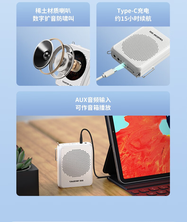 “TAKSTAR/得勝(得勝)”E126 擴(kuò)音器 單個(gè)裝(黑色有線款小蜜蜂教師隨身腰掛便攜式教學(xué)專用喊話器耳麥導(dǎo)游戶外喇叭勝輕便大功率德)