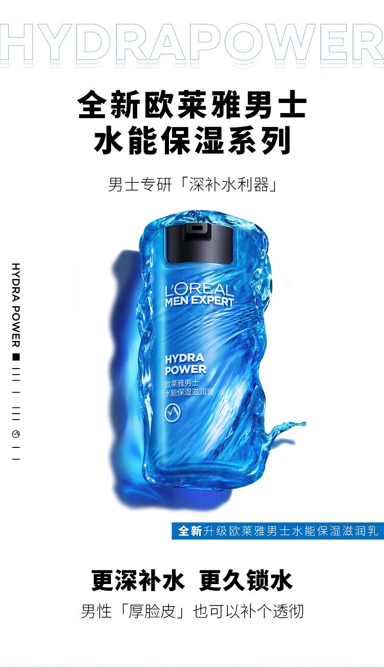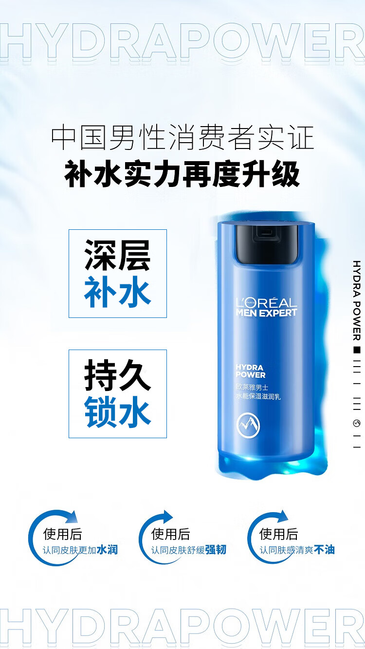 “L’OREAL/歐萊雅”50ml 男士水能保濕滋潤乳 單瓶裝(舒緩干燥滋潤不油膩)