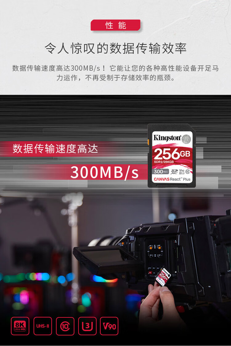 “Kingston/金士頓”SDR2/64GB SD存儲卡 1個裝(U3 V90 8K相機(jī)內(nèi)存卡高速sd卡大卡讀速300MB/s寫速260MB/s)