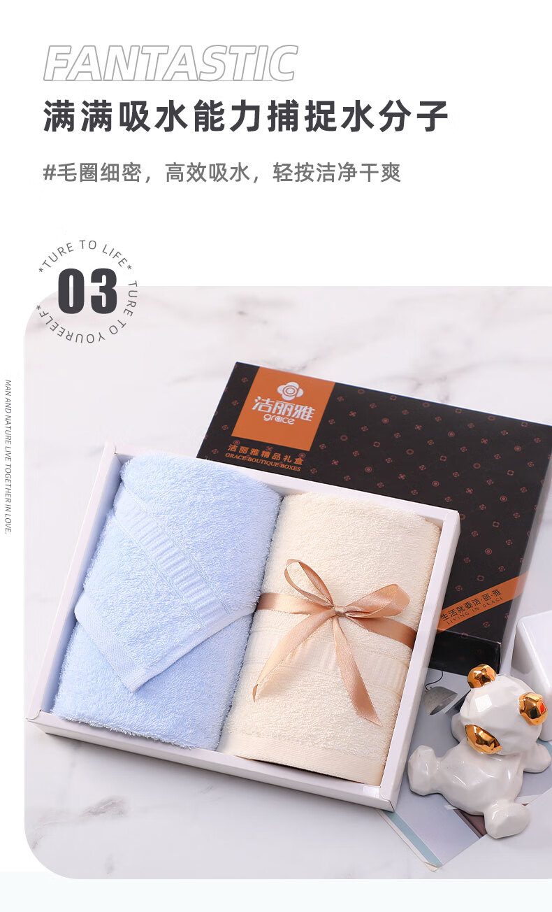 “Grace/潔麗雅”#6717 毛巾 1盒裝(抗菌毛巾禮盒A類兩件套商務套裝/男女柔軟吸水純棉公司福利送禮)