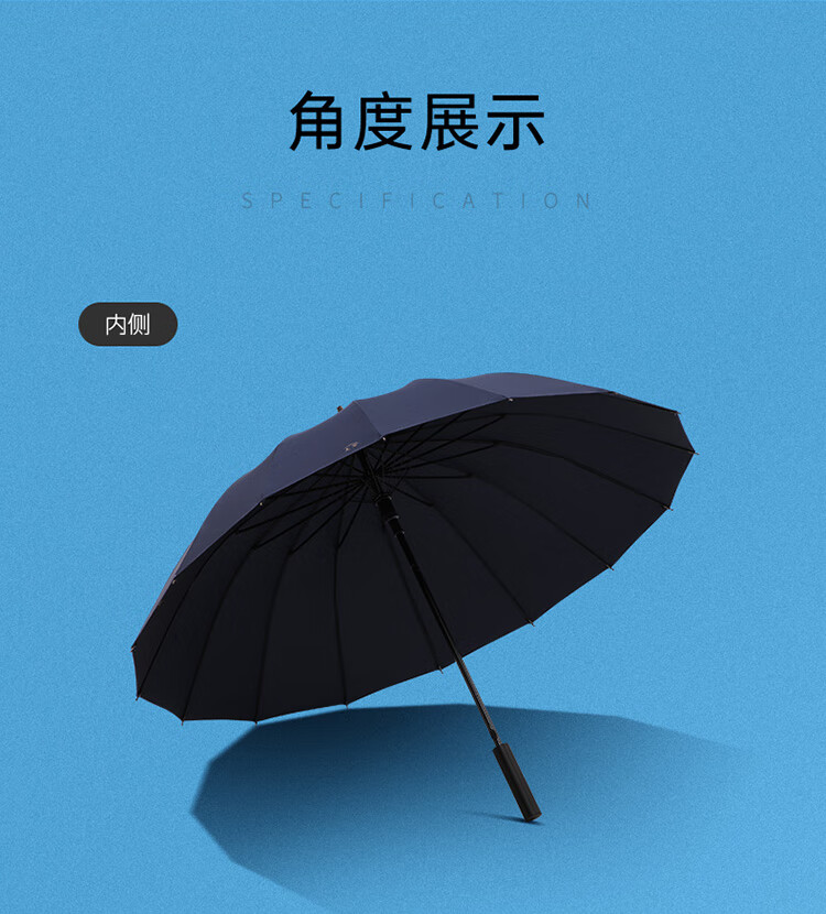 “paradise/天堂”11013E風(fēng)華 雨傘 單把裝(云炭黑雙人直柄大號(hào)半自動(dòng)雨傘16骨加固抗風(fēng)拒水)