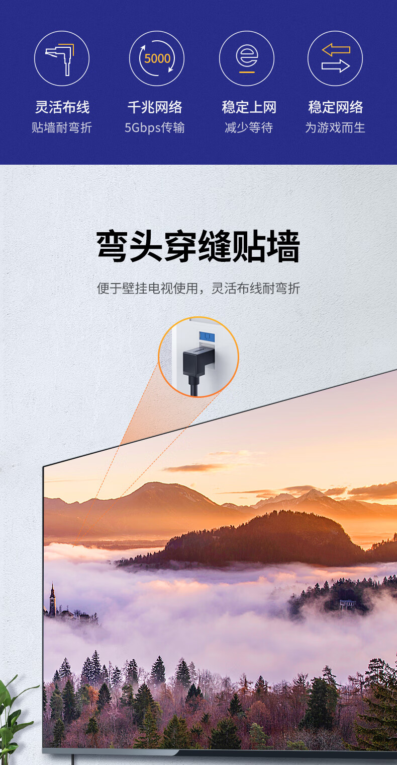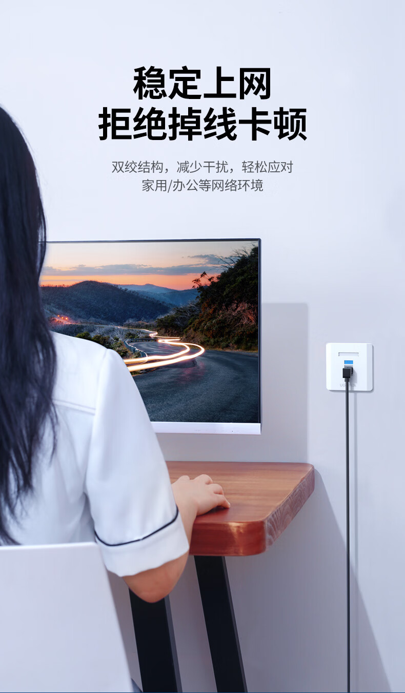 “UGREEN/綠聯(lián)”NW115 30834 六類彎頭網(wǎng)線 單條裝(CAT6類純銅千兆網(wǎng)絡(luò)連接線直角l型電腦寬帶網(wǎng)線電視跳線轉(zhuǎn)角90度POE供電2米)