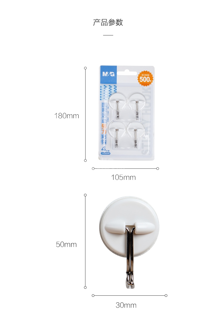 “M&G/晨光”ARCN8285 強(qiáng)力粘鉤 1PCS裝(白色圓型活動(dòng)免釘無痕掛鉤文具4個(gè)/卡)